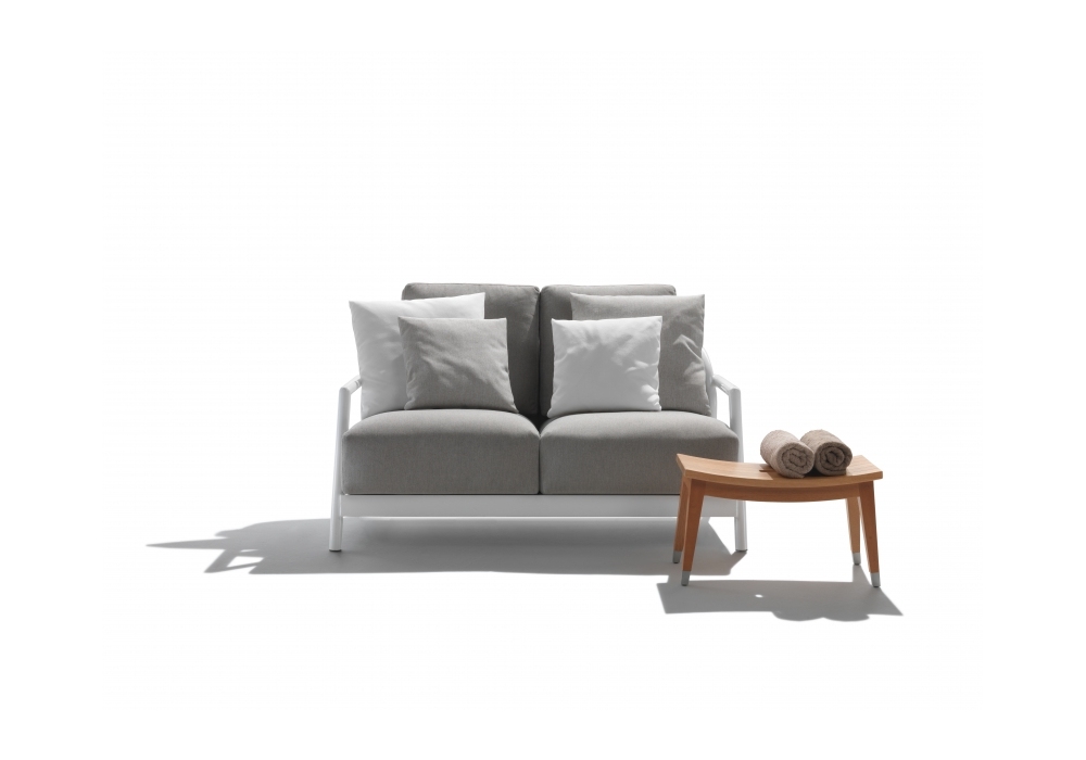 Alison Outdoor, entworfen von Carlo Colombo für Flexform, ist ein Sofa aus der Outdoor-Kollektion. Pulverbeschichtete Aluminiumstruktur, eine mit Polyurethanschaum überzogene Rückenlehne. Sitz- und Rückenkissen mit Polyurethanschaum gepolstert und mit wasserabweisendem Stoff bezogen.