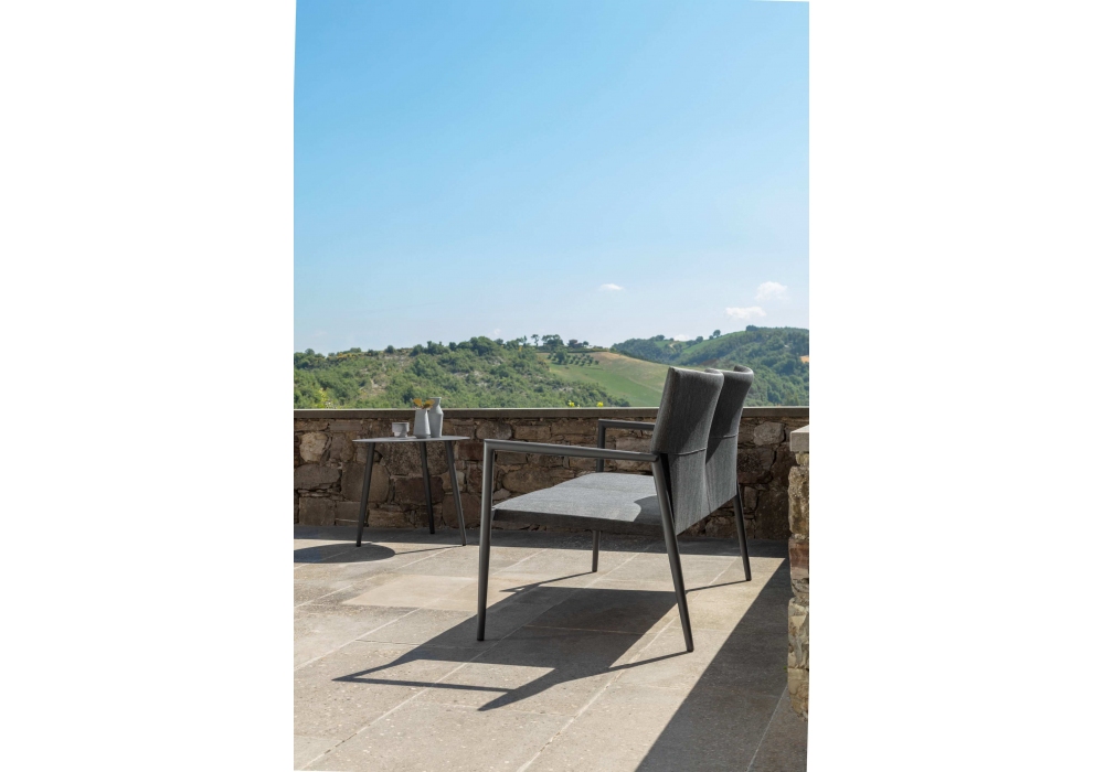 Adam entworfen für Talenti ist ein Sofa mit Aluminiumstruktur und Kissen in empfindlichen textilene Materialien beständig gegen Witterungseinflüsse.