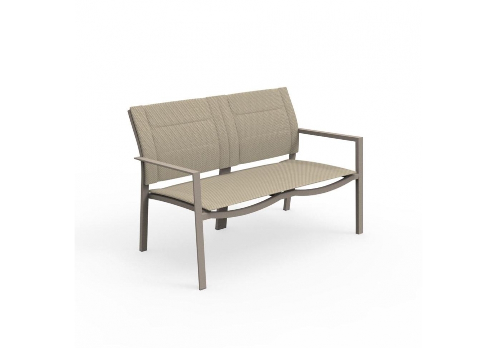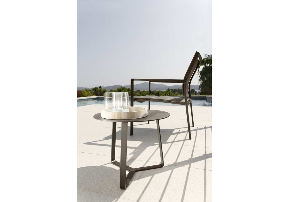 Touch Living für Talenti entworfen, ist ein Outdoor-Sofa mit Aluminiumstruktur und Textilene-Sitzbezug, erhältlich in verschiedenen Ausführungen.
