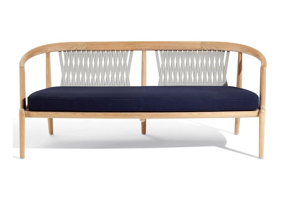 The Secret Garden von Roberto Lazzeroni für Poltrona Frau entworfen, ist ein Outdoor-Zweisitzer-Sofa, dessen Form mit konvergierenden Linien von Vintage- Booten inspiriert ist. Die Struktur aus massivem Teakholz in natürlicher Ausführung ist dezent, umhüllend und natürlich Die Beine tragen den Holzlattenrost, ein gemeinsames Merkmal aller Sitze der Kollektion, auf dem das gepolsterte Kissen ruht. Die Rückenlehne stützt das Rückenkissen und ist aus verflochtenem Baumwollflachgewebe in Ecru und Taupe gearbeitet.