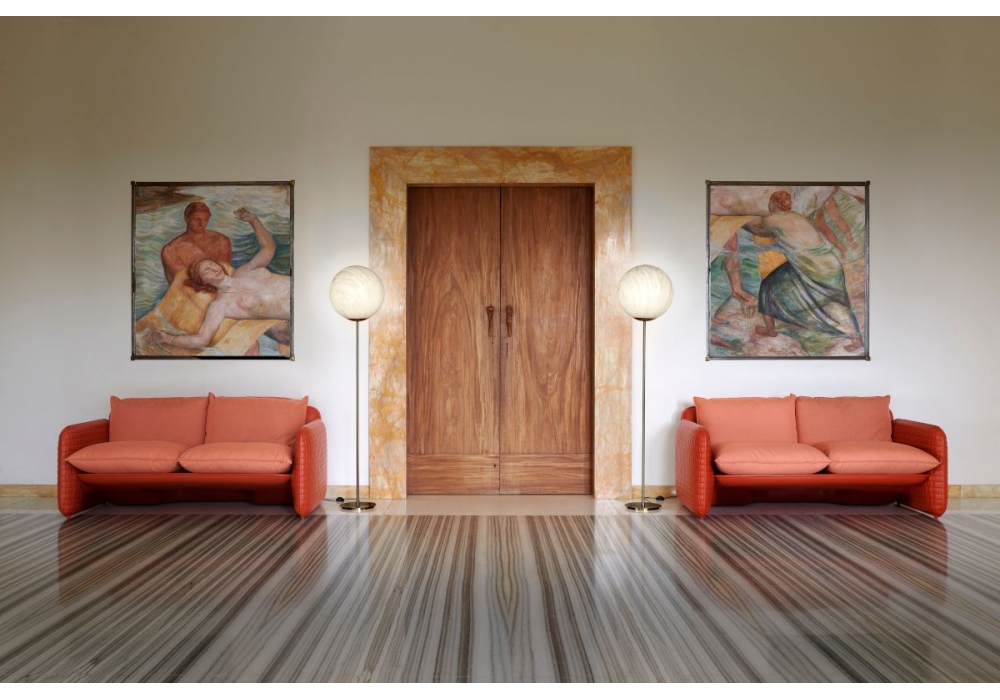 Mara Sofa, entworfen von Lorenza Bozzoli für Slide, ist ein Zweisitzer-Sofa mit seiner einzigartigen Textur, die die gesamte Struktur bedeckt, inspiriert von der handwerklichen Weberei von Leder. Die 4 mitgelieferten Kissen verleihen dem Sitz absoluten Komfort: Der wasserdichte Stoff macht sie auch perfekt für den Außenbereich. Erhältlich in verschiedenen Ausführungen