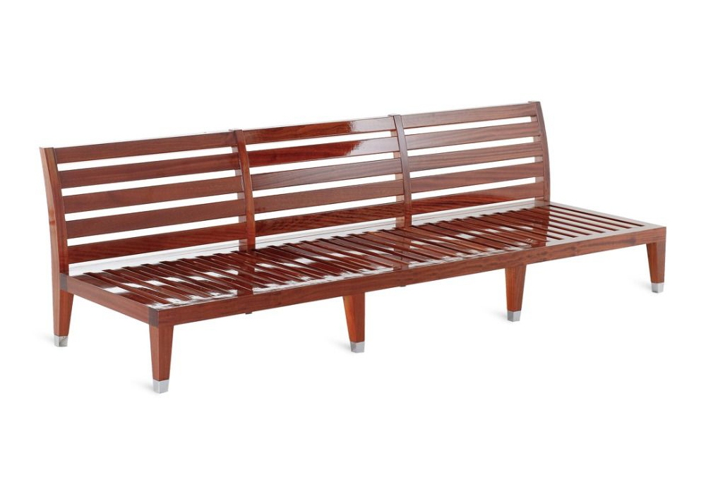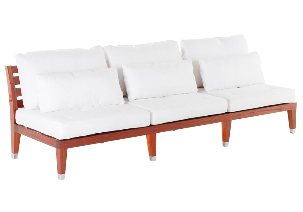 C'est la Vie von Michele Bönan für Unopiù entworfen, ist ein Sofa mit Struktur aus poliertem Mahagoniholz. Die Sitz- und Rückenkissen bestehen aus Acrylgewebe, das in verschiedenen Ausführungen erhältlich ist.