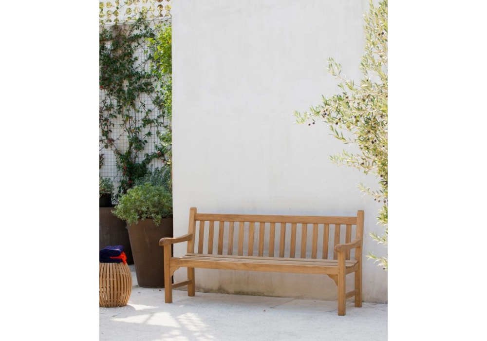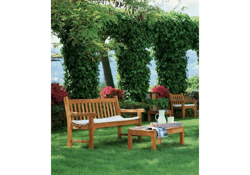 Chelsea GRDIV15, produziert und signiert von Unopiù, ist ein Sofa mit natürlicher Teakholzstruktur. Die Kissen sind mit milchfarbenem Acrylstoff bezogen. Chelsea ist in verschiedenen Größen erhältlich.