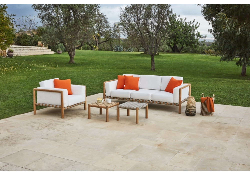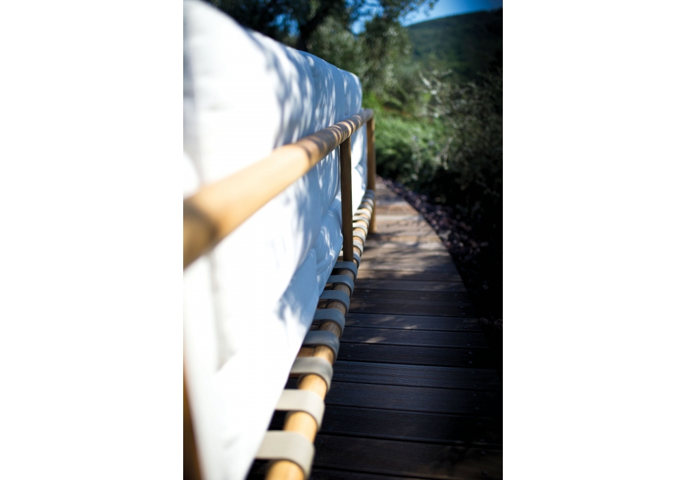 Pevero, entworfen und hergestellt von Unopiù, ist ein Sofa mit Teakholzstruktur. Die Sitz- und Rückenkissen bestehen aus Acrylgewebe in verschiedenen Ausführungen. Pevero ist in verschiedenen Größen erhältlich.