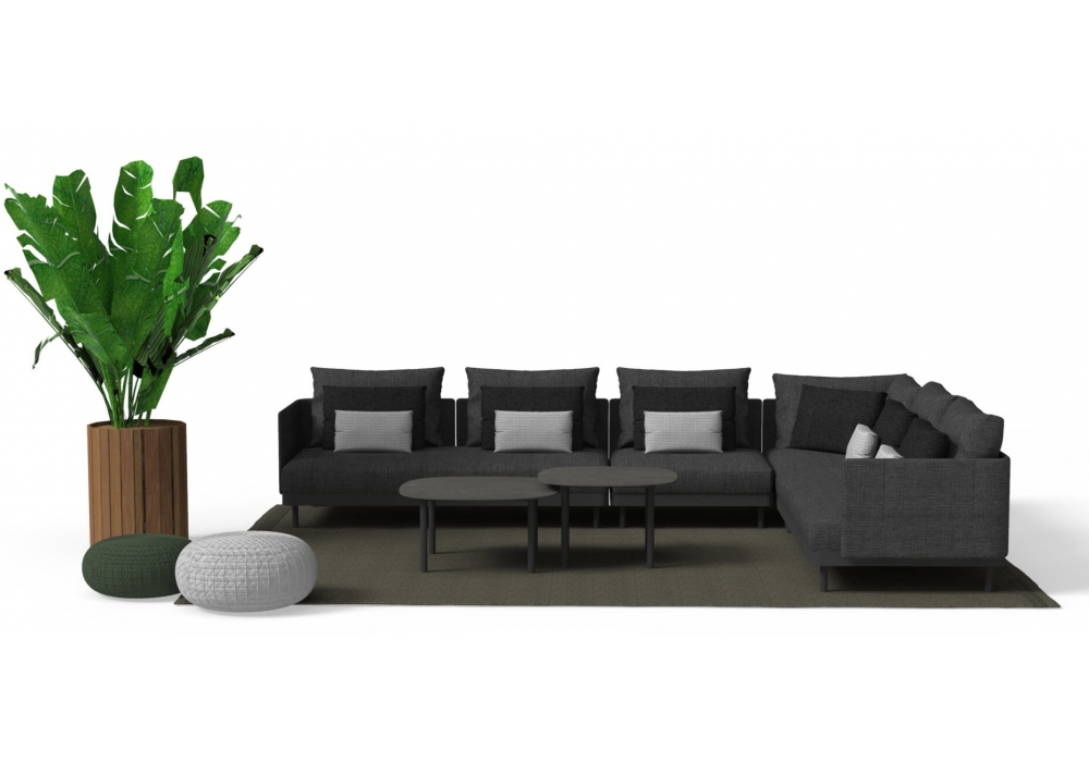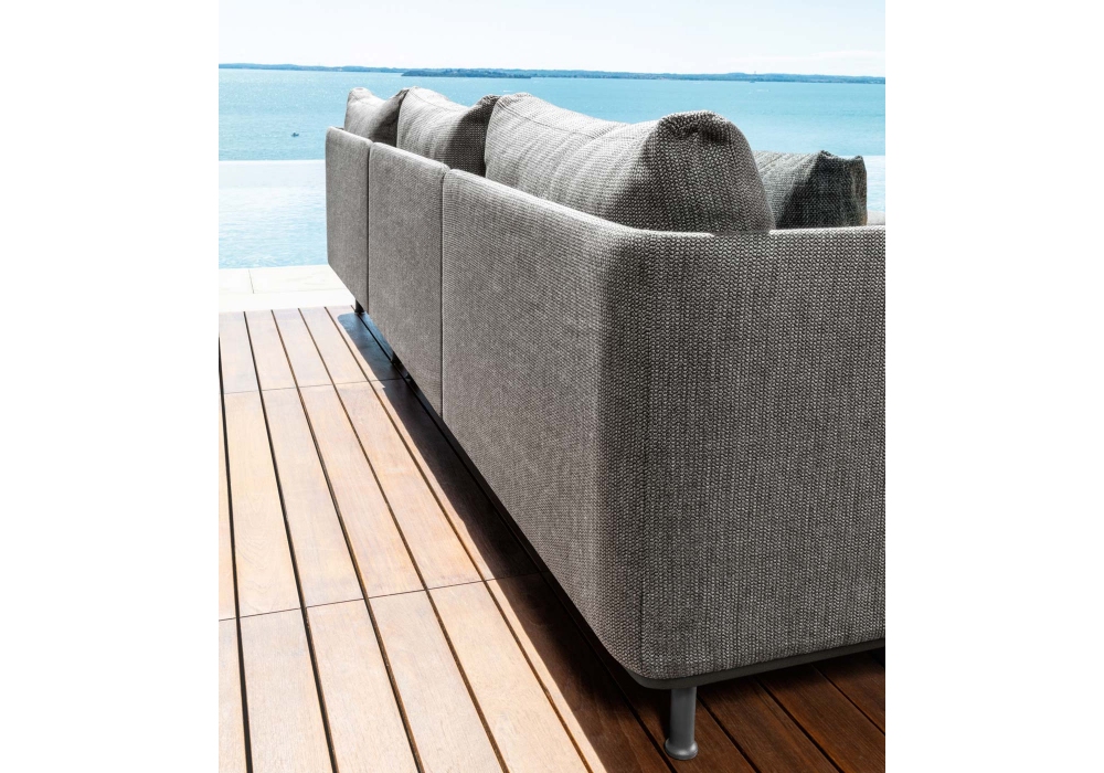 Slam von Ludovica + Roberto Palomba für Talenti entworfen, ist ein modulares Outdoor-Sofa, das in mehreren Konfigurationen erhältlich ist. Struktur aus pulverbeschichtetem Aluminium. Die Kissen haben abnehmbare Bezüge und sind mit wetterbeständigen Outdoor-Stoffen bezogen.