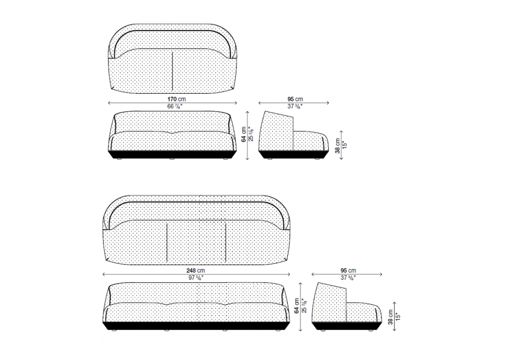 | Abmessungen | 170 x 95 x H 64 cm; 248 x 95 x H 64 cm. |