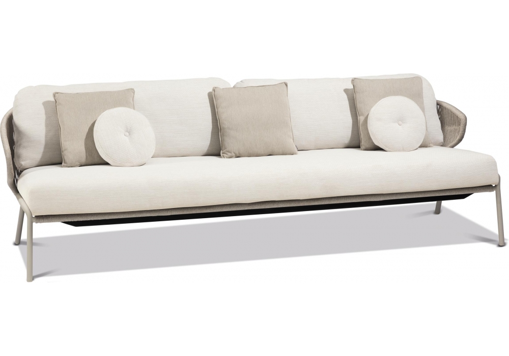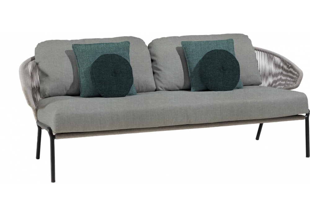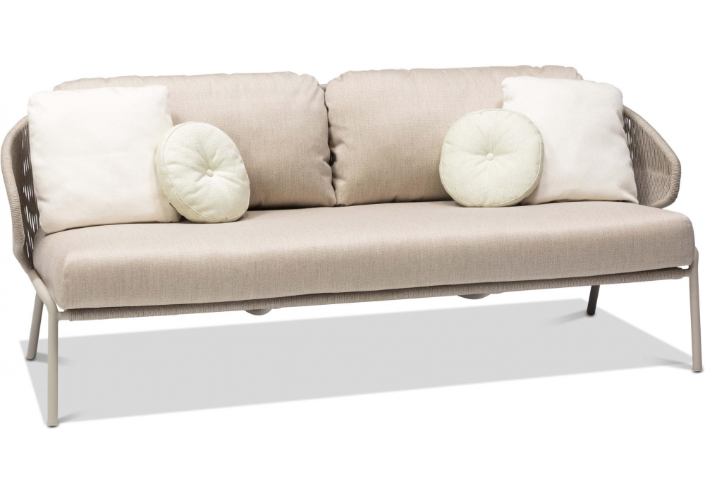 Radius von Stephane De Winter für Manutti entworfen, ist ein Outdoor-Sofa mit einer Edelstahlstruktur und gewebtem Seil. Polsterung der Kissen in Stoff. Erhältlich in verschiedenen Ausführungen und Größen.