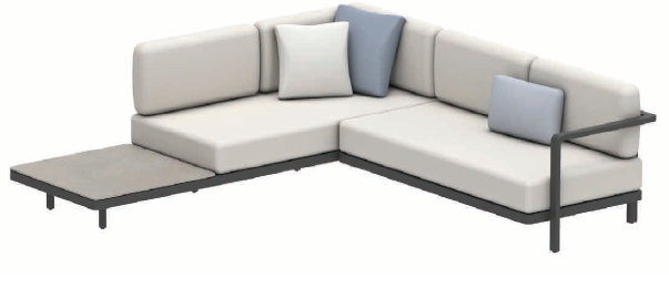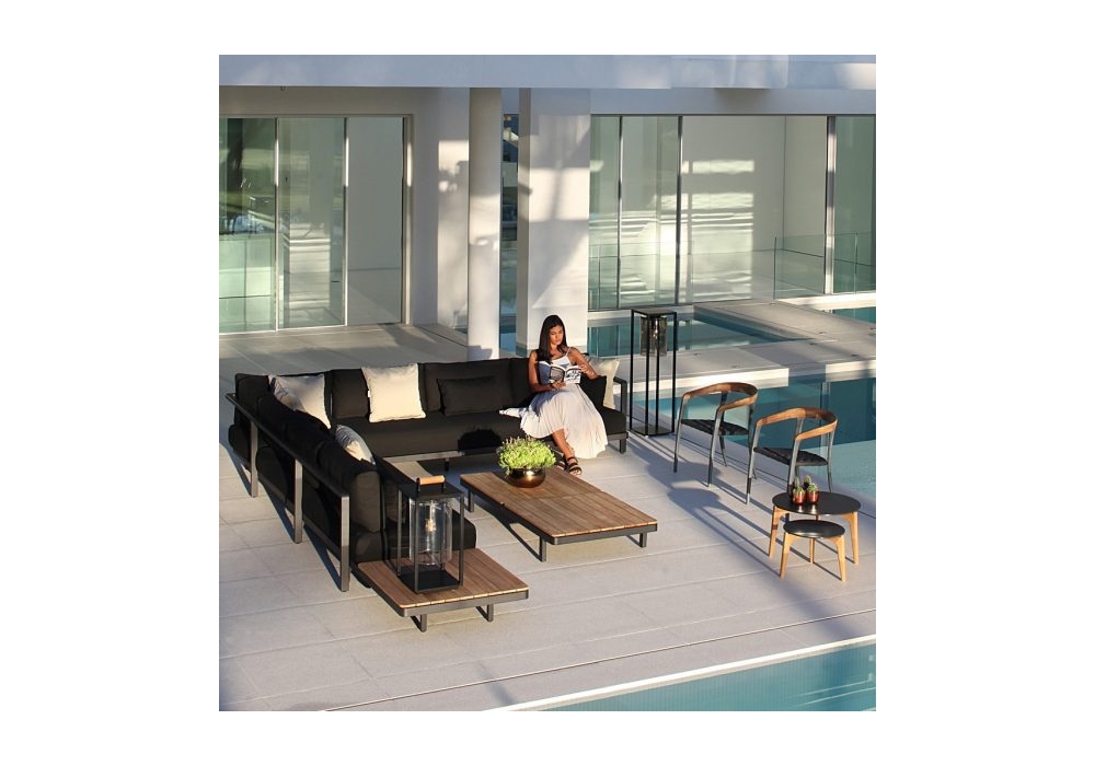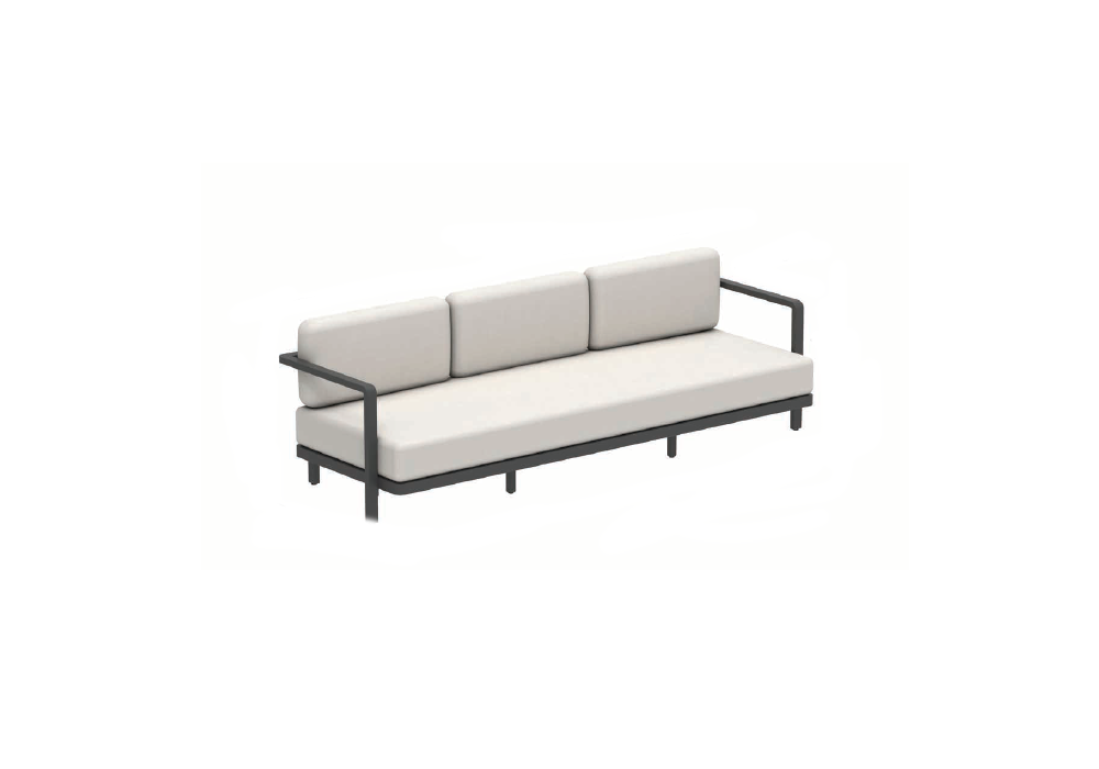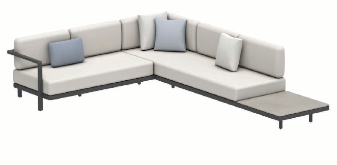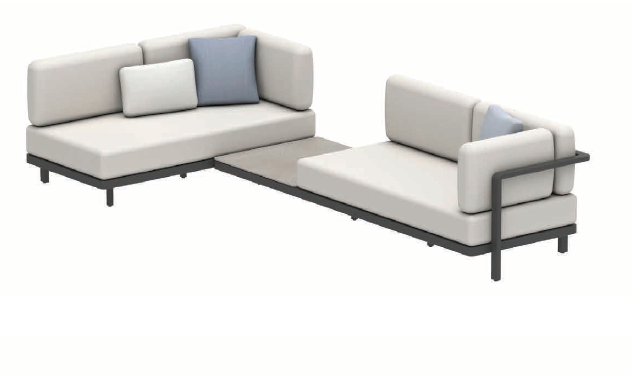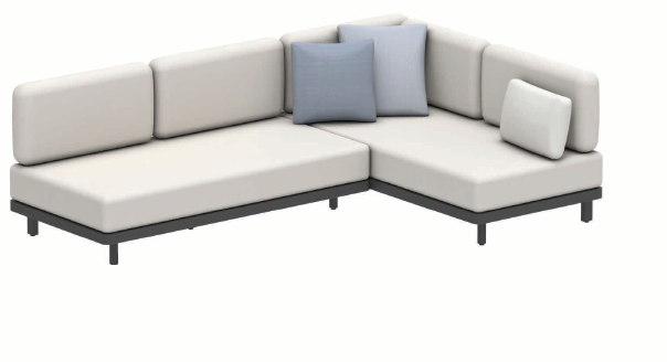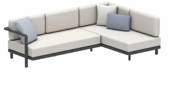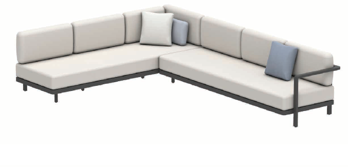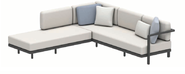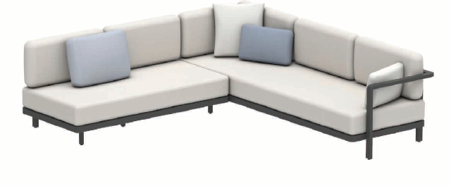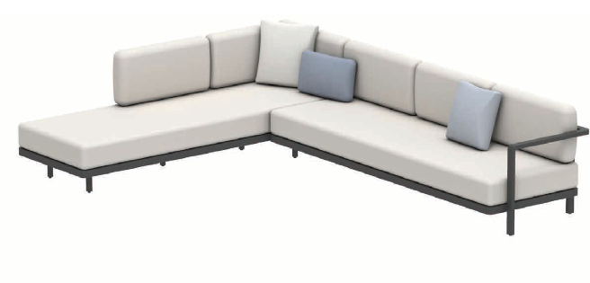 Alura Lounge, entworfen und hergestellt von Royal Botania, ist ein Outdoor-Sessel mit Aluminiumstruktur in drei Ausführungen und Kissen in verschiedenen Farben.