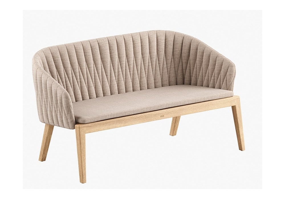 Calypso von Kris Van Puyvelde für Royal Botania entworfen, ist ein Outdoor-Sofa mit Kissen in verschiedenen Ausführungen. Erhältlich in der Version mit Rückenlehne aus Synthetikgewebe.