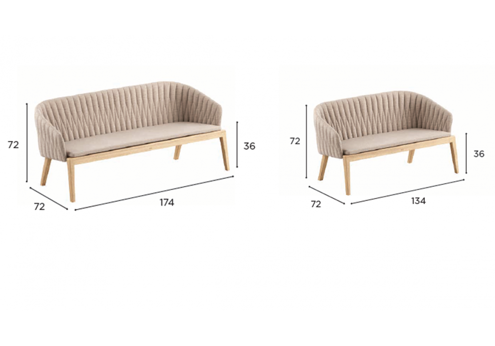 | Abmessungen | - 134 x 72 x H 36 cm; - 174 x 72 x H 36 cm. |