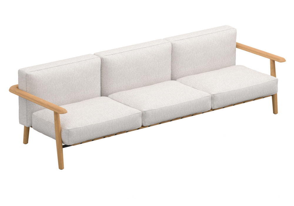 Mambo Lounge, von Kris Van Puyvelde für Royal Botania entworfen, ist ein Outdoor-Sofa mit Teakholzstruktur und Sitz- und Rückenkissen, die in verschiedenen Ausführungen bezogen sind. Erhältlich in verschiedenen Größen und Kombinationen.