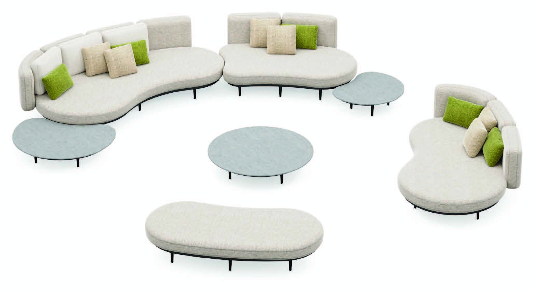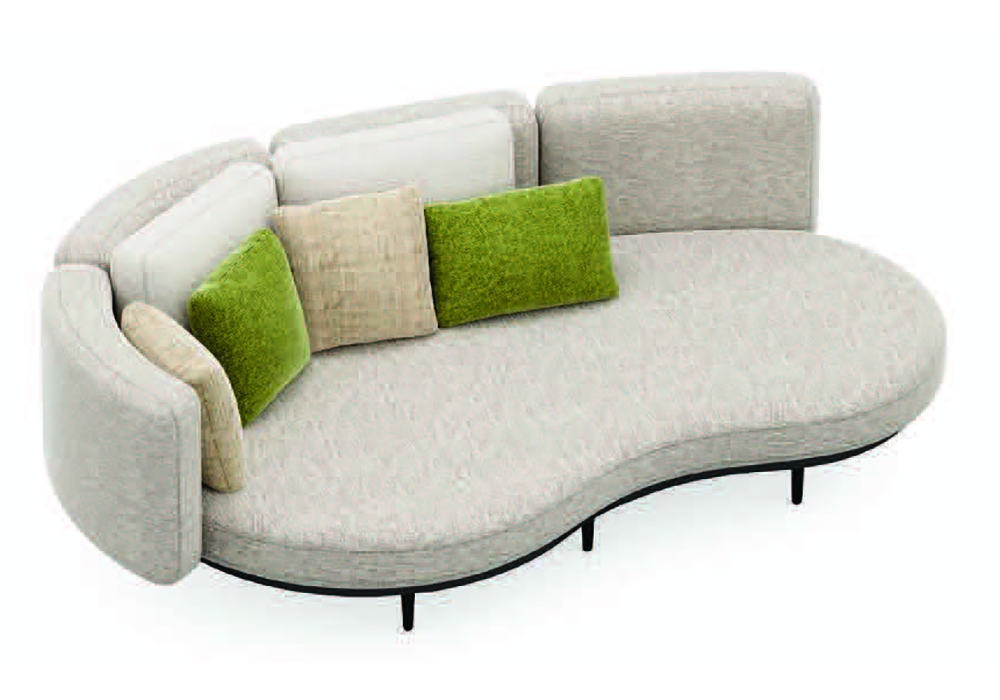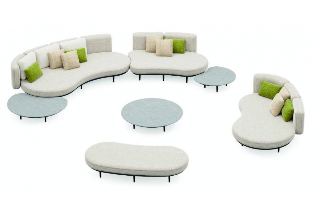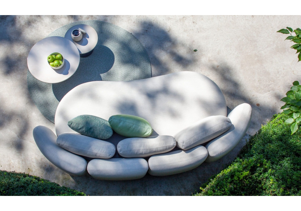 Organix Lounge von Kris Van Puyvelde für Royal Botania entworfen, ist ein Outdoor-Sofa mit Aluminium. Die Rückenkissen sind passend zu den bohnenförmigen Elementen in drei unterschiedlichen Rundungen erhältlich und lassen sich ganz nach Belieben einfach an den Aluminiumfüßen befestigen.