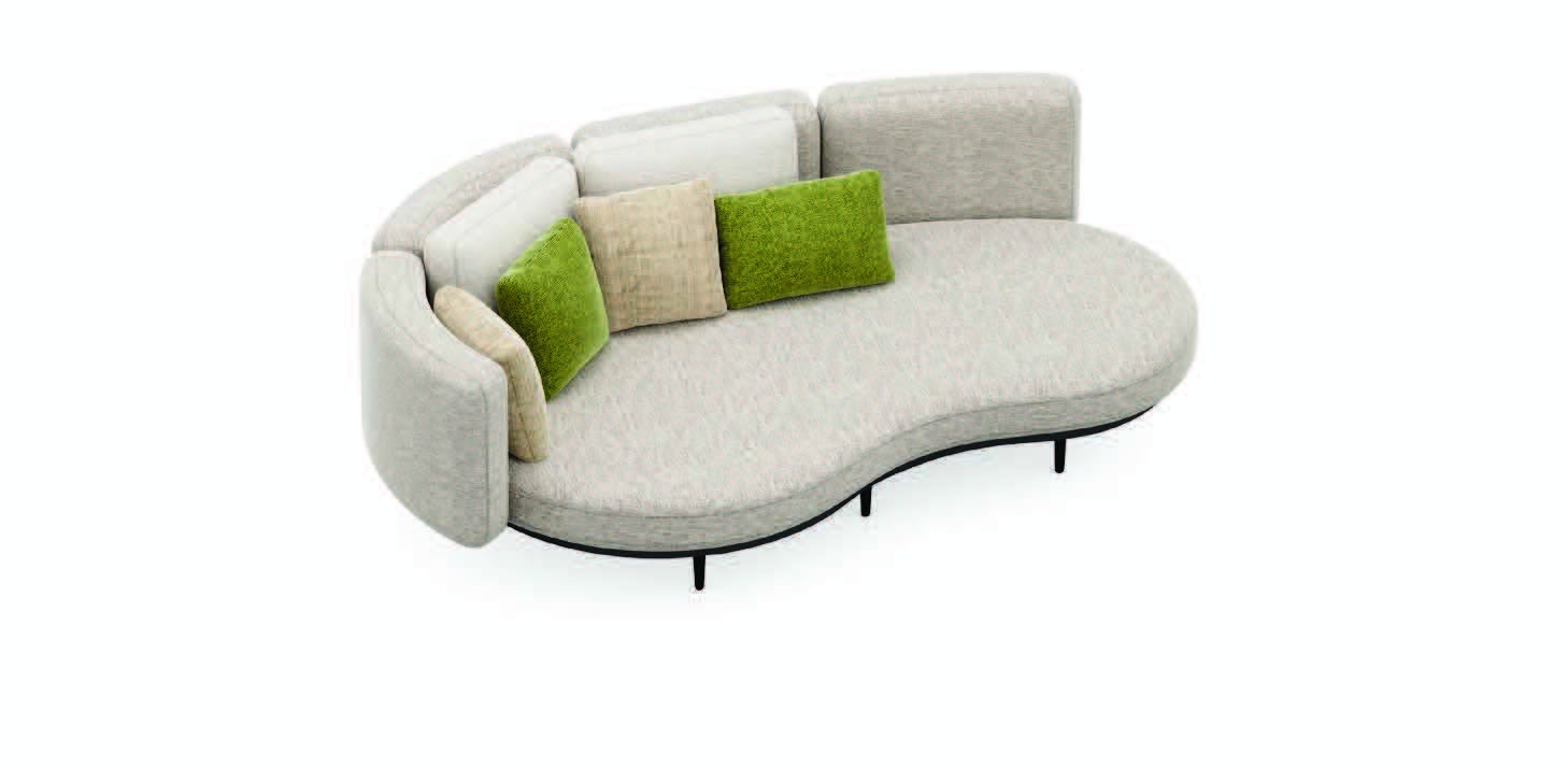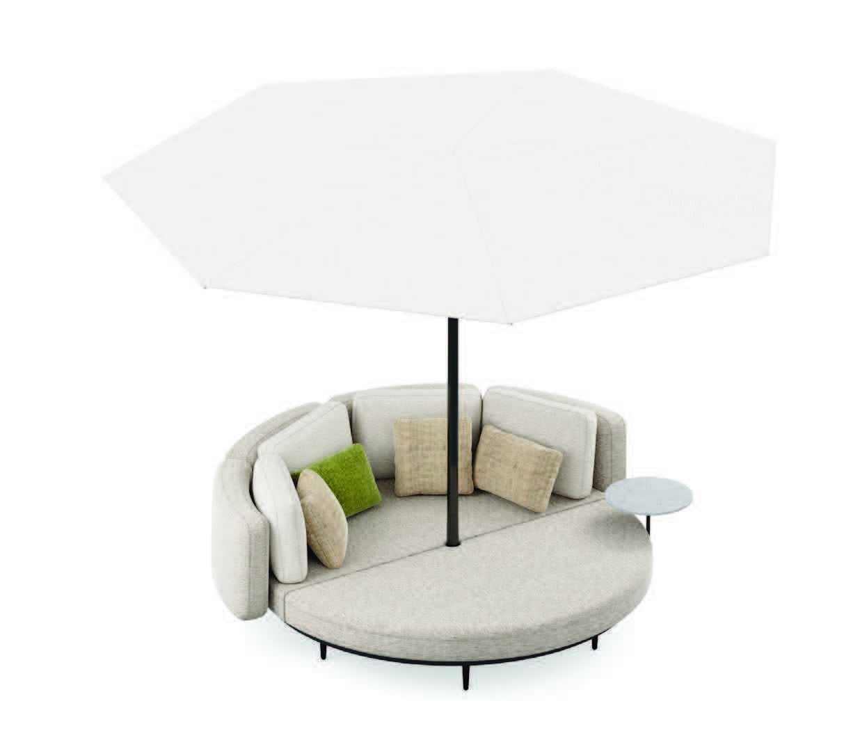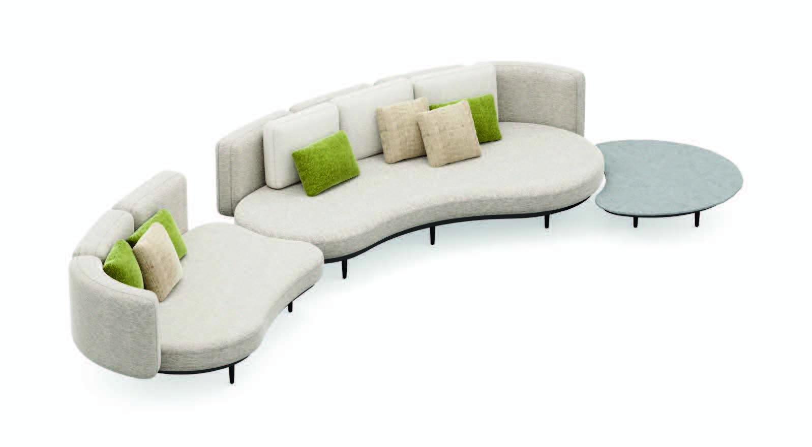 Organix Lounge von Kris Van Puyvelde für Royal Botania entworfen, ist ein Outdoor-Sofa mit Aluminium. Die Rückenkissen sind passend zu den bohnenförmigen Elementen in drei unterschiedlichen Rundungen erhältlich und lassen sich ganz nach Belieben einfach an den Aluminiumfüßen befestigen.
