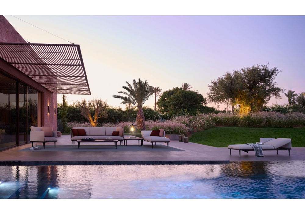 Styletto Lounge von Kris Van Puyvelde für Royal Botania entworfen, ist ein modulares Outdoor-Sofa mit Aluminiumstruktur und Kissen mit Polsterung in verschiedenen Ausführungen. Erhältlich in verschiedenen Größen und Zusammensetzungen.