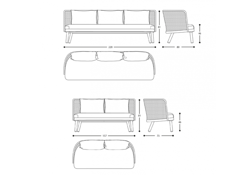 | Abmessungen | - 157 x 73 x H 81 cm; - 228 x 80 x H 81 cm. |