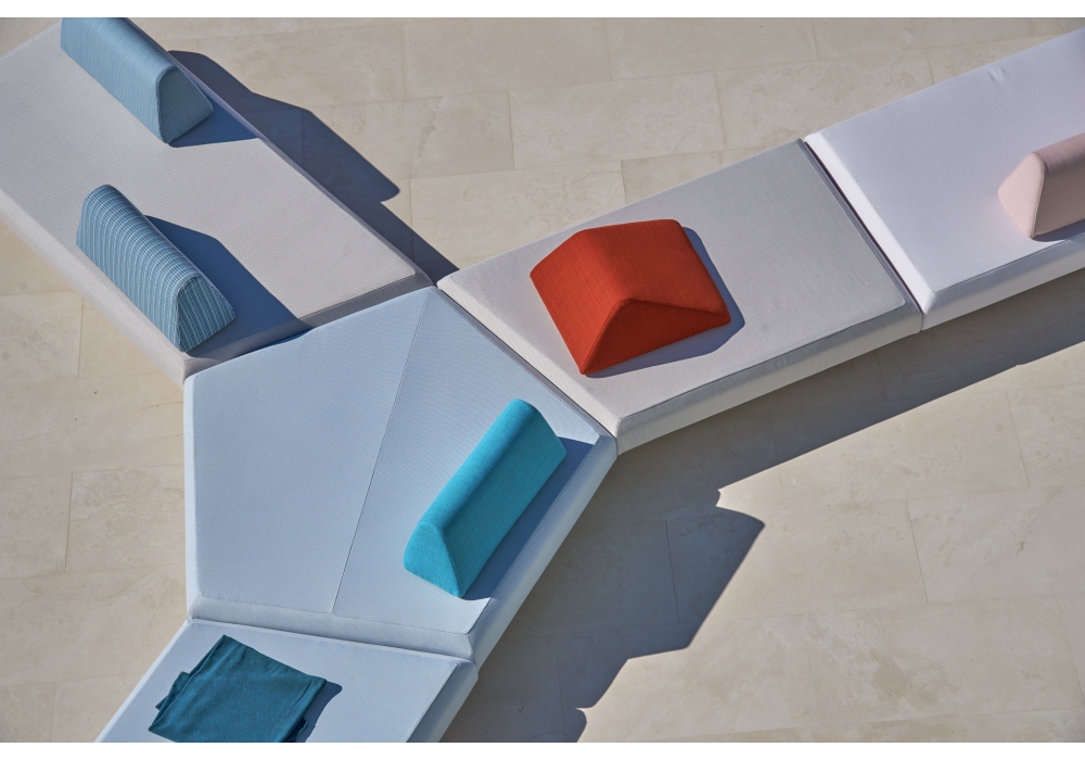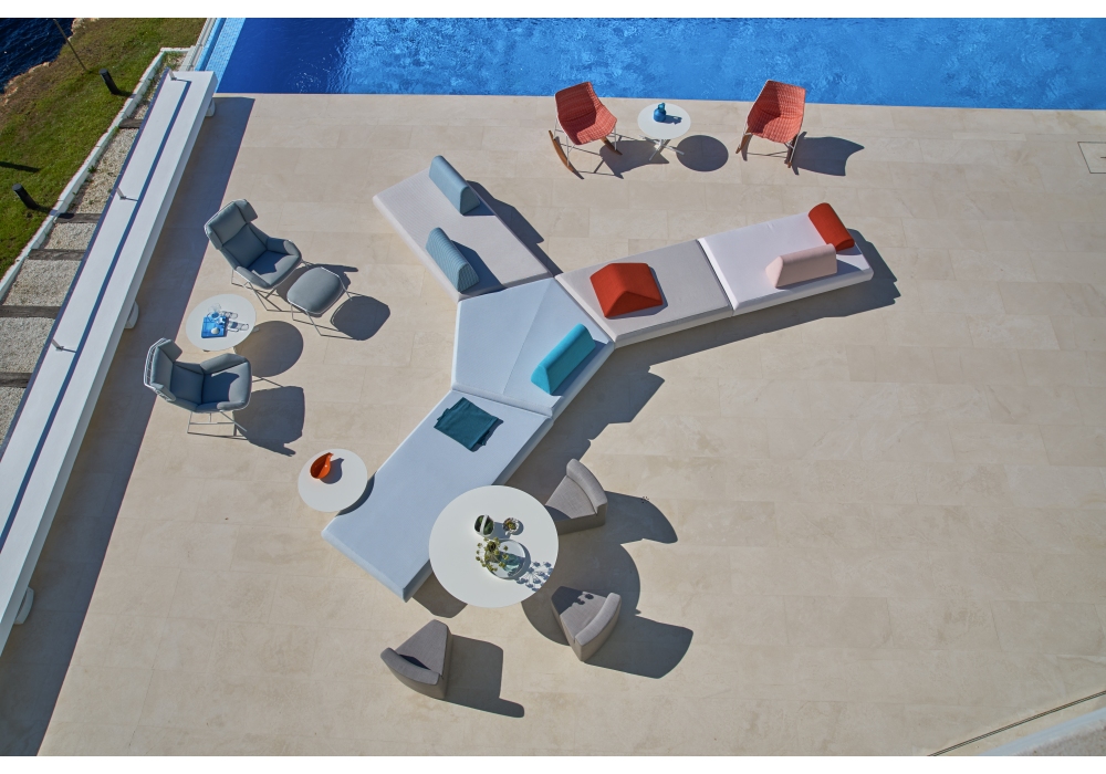 Bento, von Calvi Brambilla für Varaschin entworfen, ist ein modulares Sofa mit tragender Struktur aus massivem Okumè-Holz und Polsterung mit Dryfeel-Gummi für den Außenbereich. Erhältlich in verschiedenen Ausführungen und Zusammensetzungen.