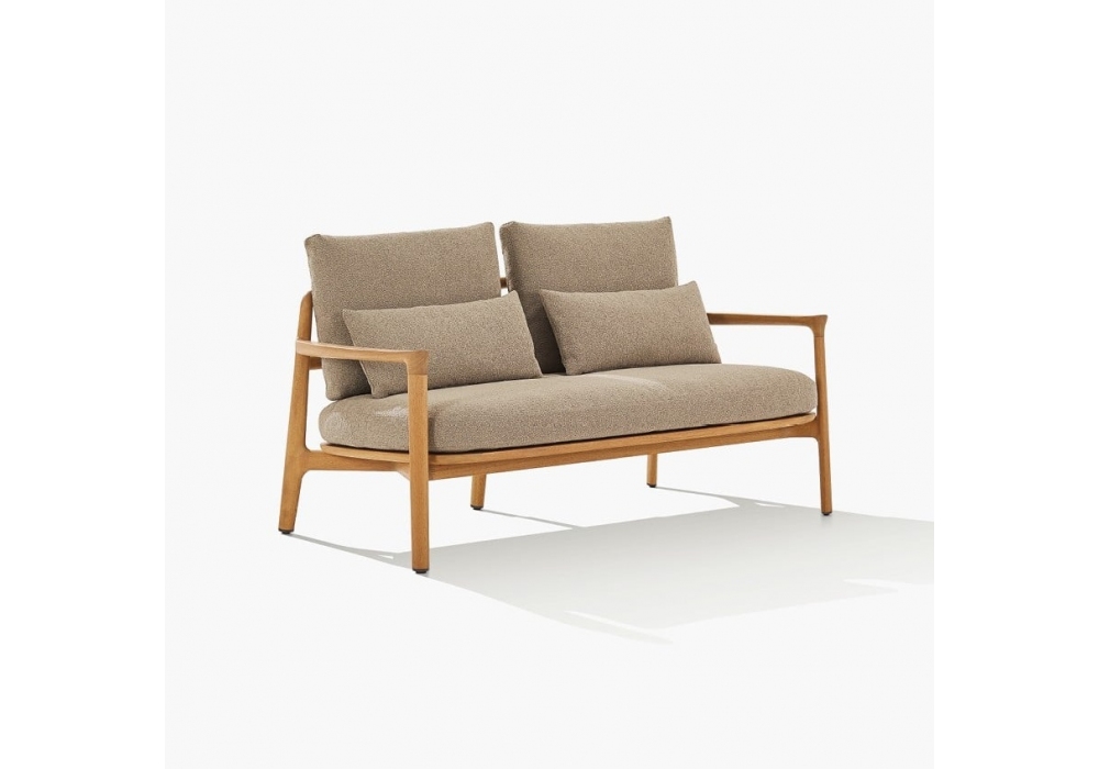 Magnolia von Emmanuel Gallina für Poliform entworfen, ist ein Sofa mit Struktur aus massivem Iroko natur oder schwarz gebeiztem Iroko. Sitz- und Rückenkissen aus recyceltem PET-Polyester mit Polyurethan-Einlage. Optionales Kissen aus Polyurethan. Vorbespannung aus Polyesterfaser mit heißversiegelten Nähten. Abnehmbarer Stoffbezug.