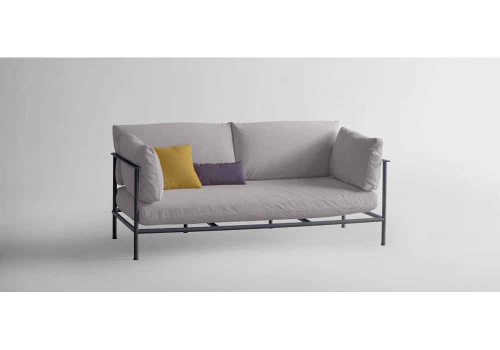 Elodie Outdoor von Chiara Andreatti für Potocco entworfen, ist ein Outdoor-Sofa mit Struktur aus geprägtem, lackiertem Metallrohr in verschiedenen Ausführungen. Sitzfläche und Rückenlehne sind mit feuerfestem Polyurethanschaum gepolstert und mit verschiedenen Stoffen bezogen.