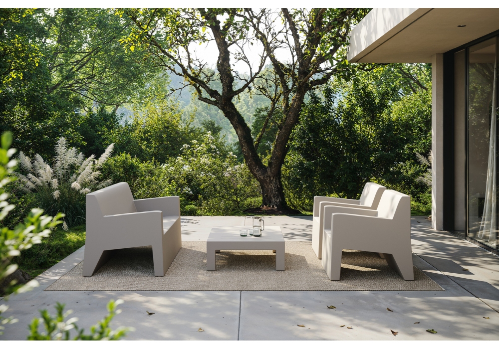 Jut von Vondom entworfen, ist ein Sofa, das im Rotationsgussverfahren aus Polyethylenharz hergestellt wird. 100 % recycelbar. Artikel für den Innen- und Außenbereich geeignet. Verfügbar in mehreren Ausführungen. Sitzkissen auf Anfrage.