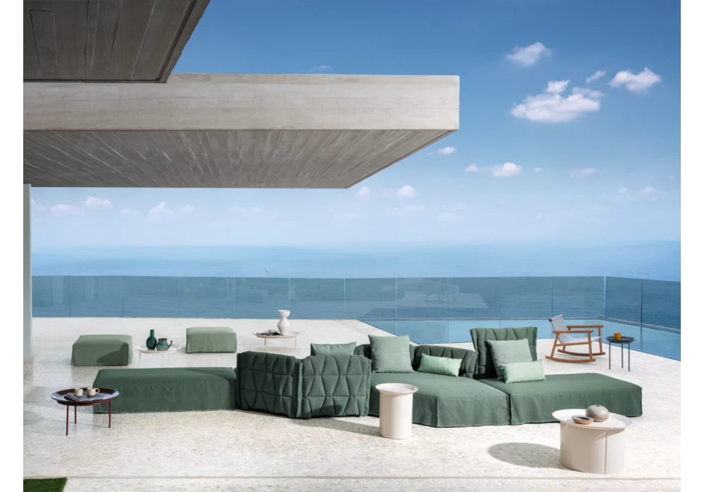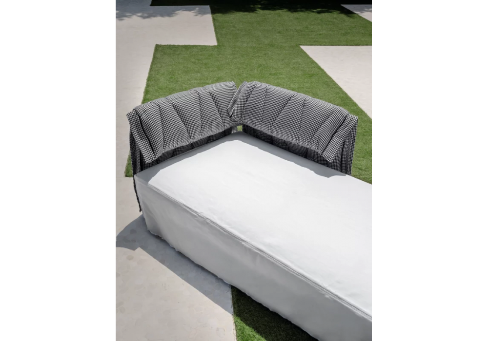 Flair von Gabriele & Oscar Buratti für Gervasoni entworfen, ist ein modulares System aus Sitzen und Rückenlehnen, das in unzähligen Formen und Größen erhältlich ist. Flair ist informell, weich und zugleich elegant und zeichnet sich durch eine klappbare Rückenlehne aus, die mit gestepptem Stoff bezogen ist, der die Skyline definiert und belebt.