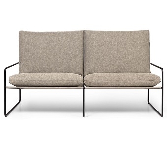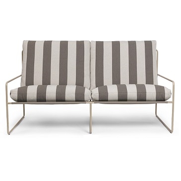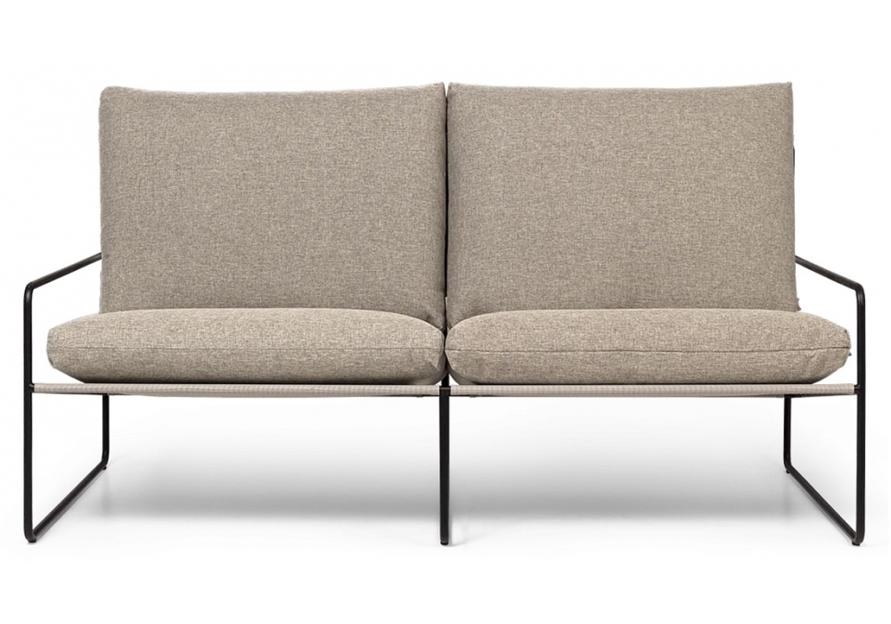 Desert 2 - Seater von Ferm Living entworfen, ist ein 2-Sitzer-Außensofa mit galvanisiertem Stahlrahmen mit Pulverbeschichtung. Sitz aus 70% Vinyl und 30 % Polyester-Gewebe. Innenkissen aus Polyesterpolsterung und PU-Schaum. Verfügbar in 2 Ausführungen.