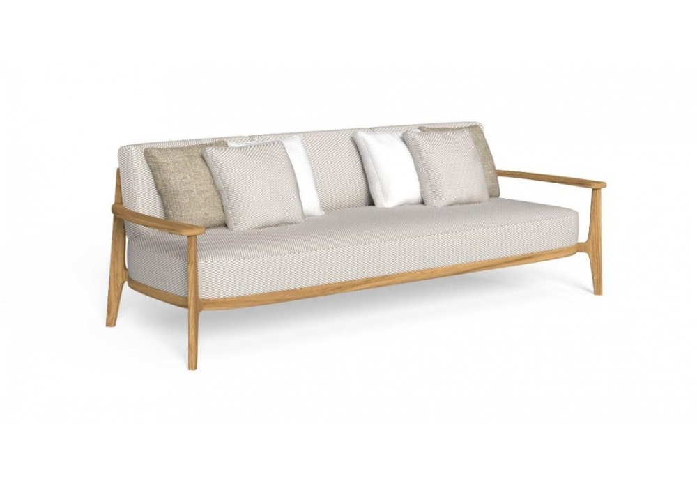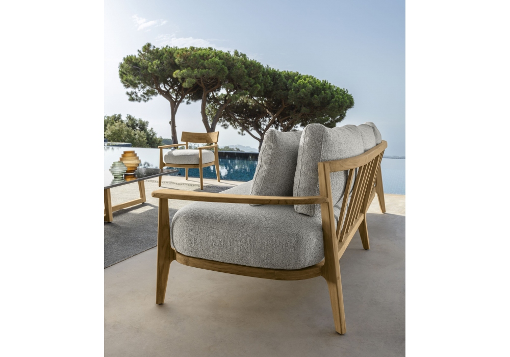 Ever von Christophe Pillet für Talenti entworfen, ist ein Sofa aus Holz, gepolsterter Sitz und Rückenlehne mit Stoffbezug. Erhältlich in verschiedenen Ausführungen.