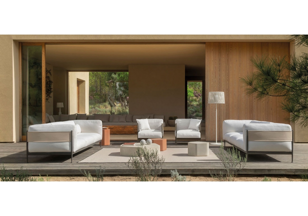 Obi von Ludovica + Roberto Palomba für Expormim entworfen, ist ein Sofa aus Aluminium, gepolsterte Kissen mit Stoffbezug. Verfügbar in verschiedenen Ausführungen.