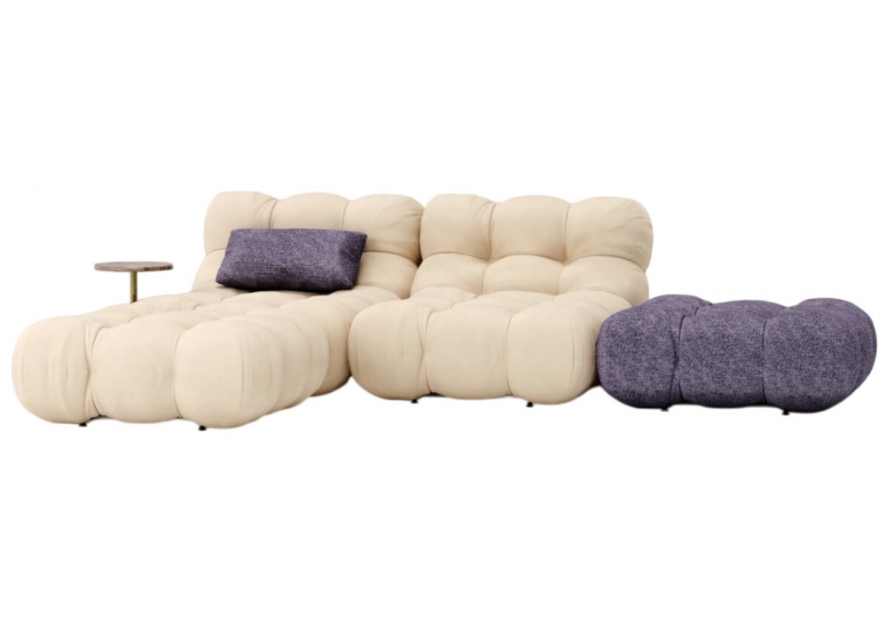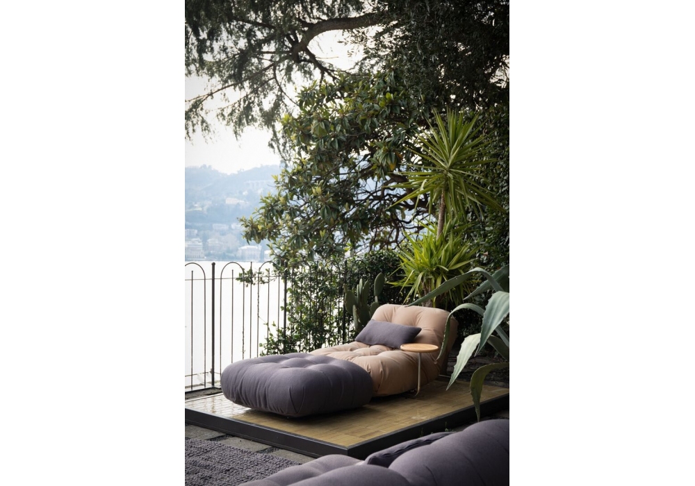 Eileen Outdoor von Baxter P. entworfen, ist ein modulares Sofa mit einer Struktur aus poliertem Edelstahl 316 oder satiniertem Messing und einer Polsterung aus Polyurethanschaum unterschiedlicher Dichte. Der Beistelltisch besteht aus massivem, sandgestrahltem Iroko mit Ölfinish in verschiedenen Ausführungen. Abnehmbarer Bezug.