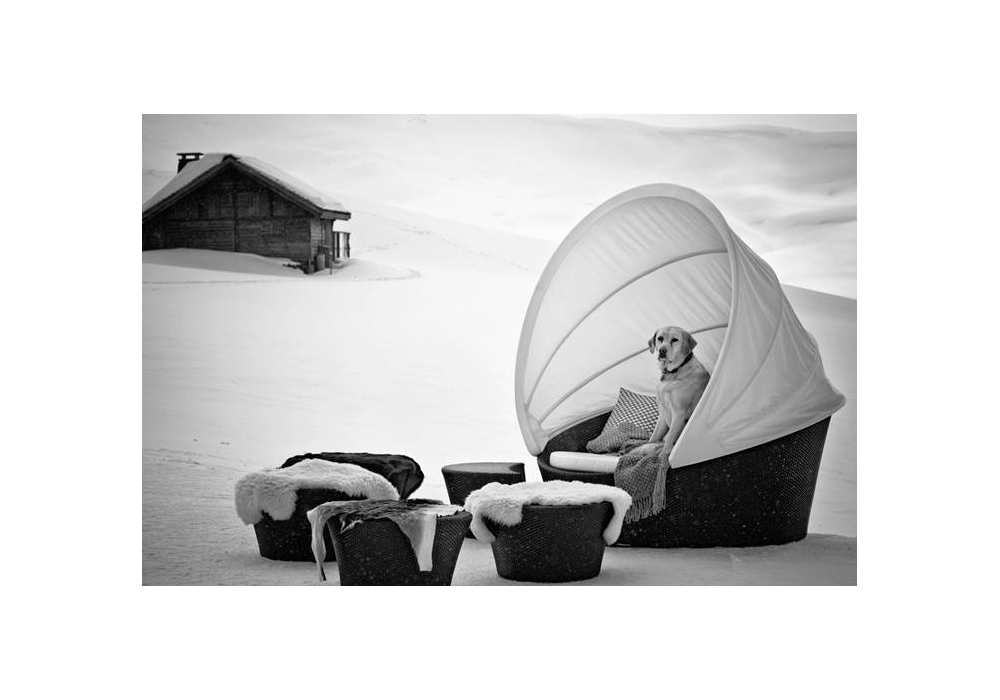 Orbit von Richard Frinier für Dedon ist ein Loveseat mit Aluminiumrahmen und Ballaststoffe. Das futuristische Design bricht mit unseren Konventionen und definiert das Konzept der Möbel neu. Die leicht gleitenden Rollen machen es zum Kinderspiel, das Sofa entsprechend Ihrer Stimmung oder dem Sonnenstand zu bewegen.