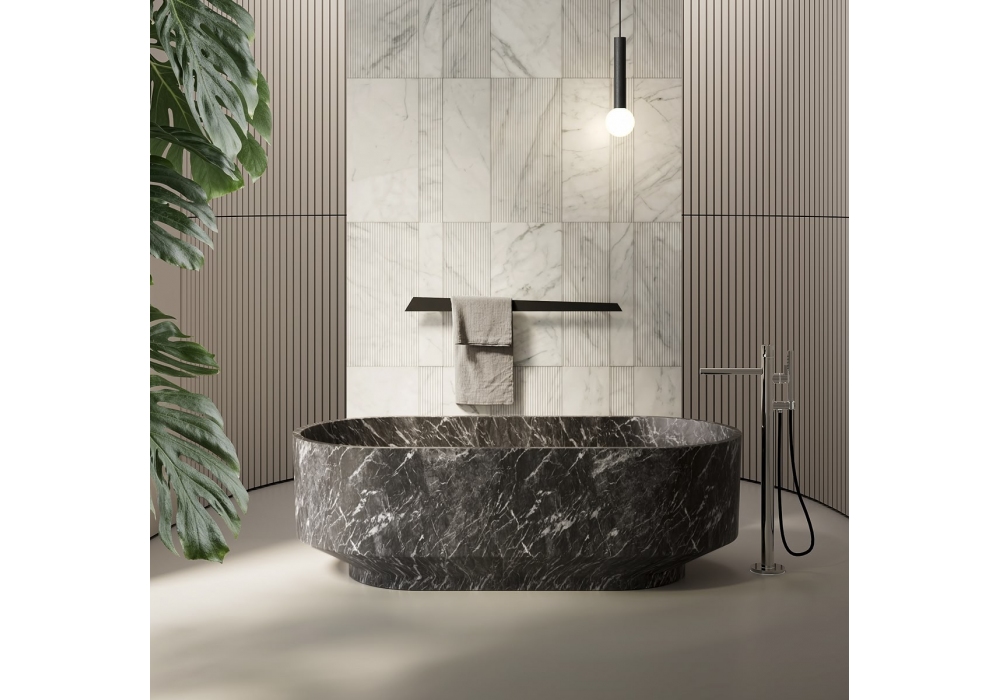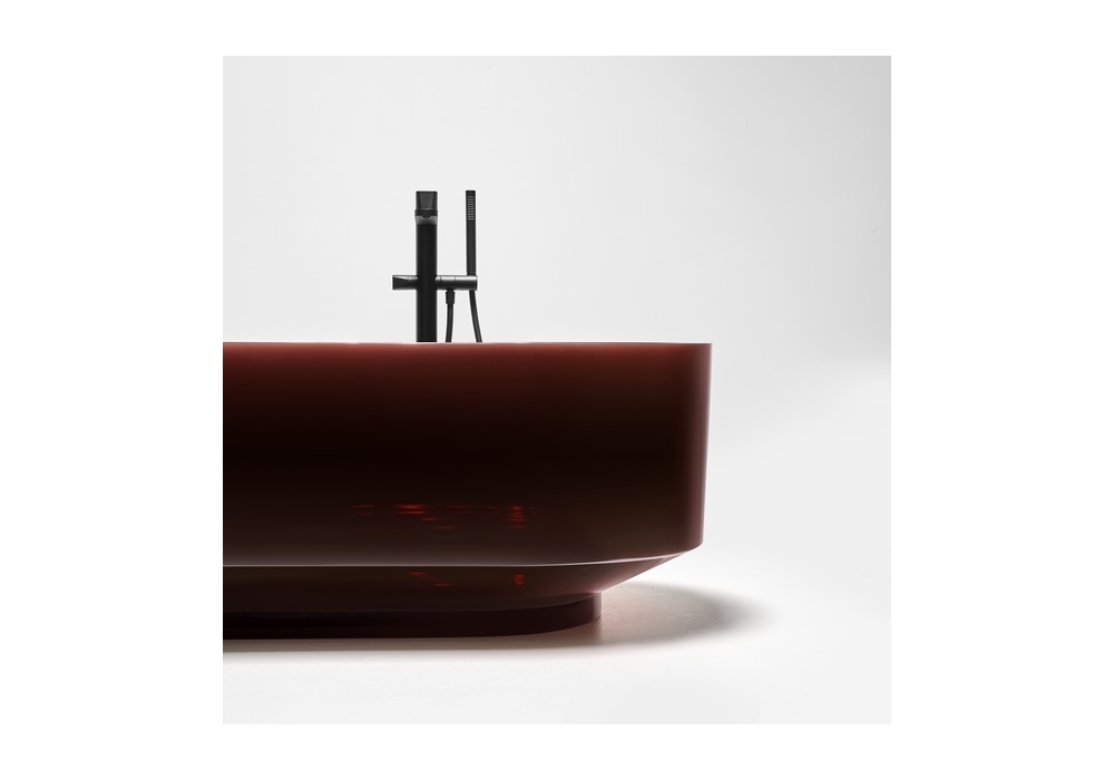 Borghi von Gumdesign für Antonio Lupi entworfen, ist eine ovale Badewanne in Cristalmood oder Icemood oder in Stein, verfügbar in verschiedenen Farben, komplett mit Ablauf mit Klick-Klack-Druckablaufsystem, Siphon und flexiblem Schlauch.