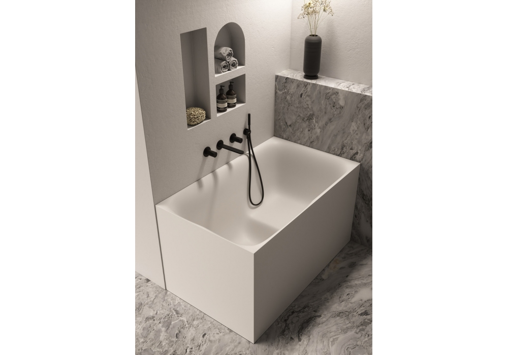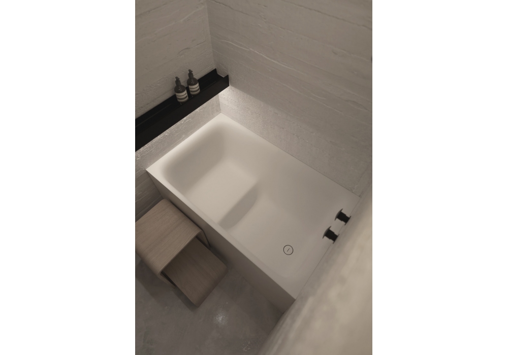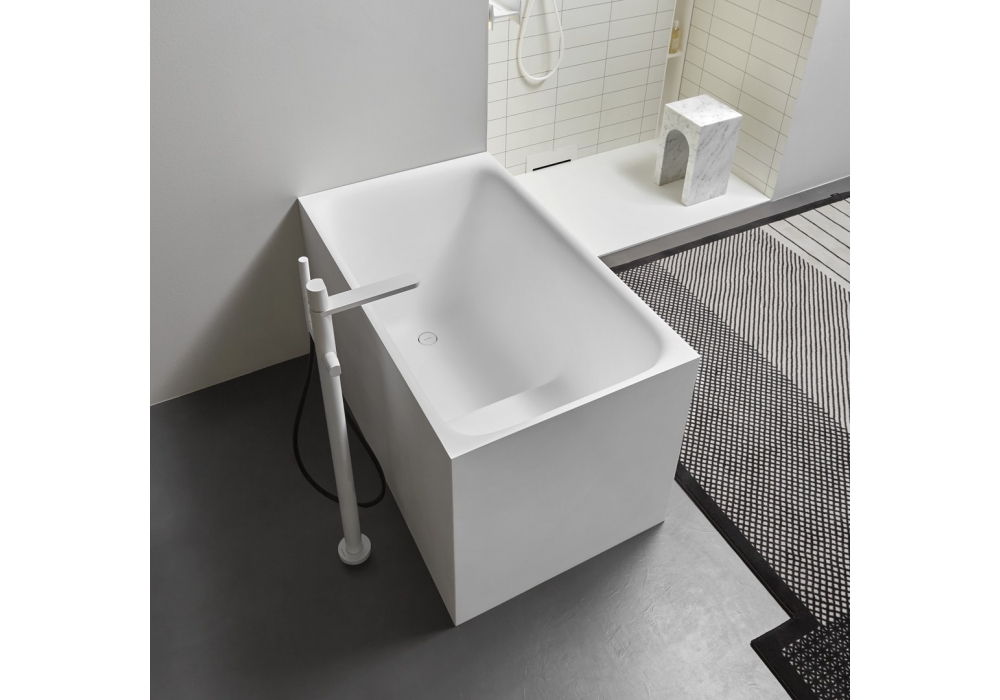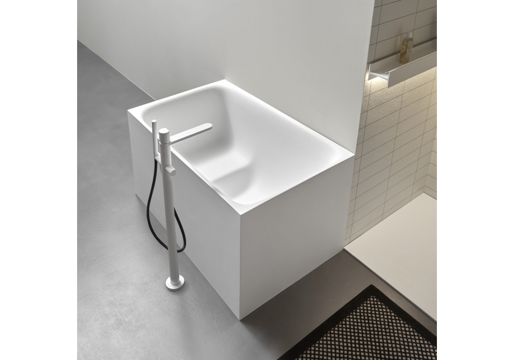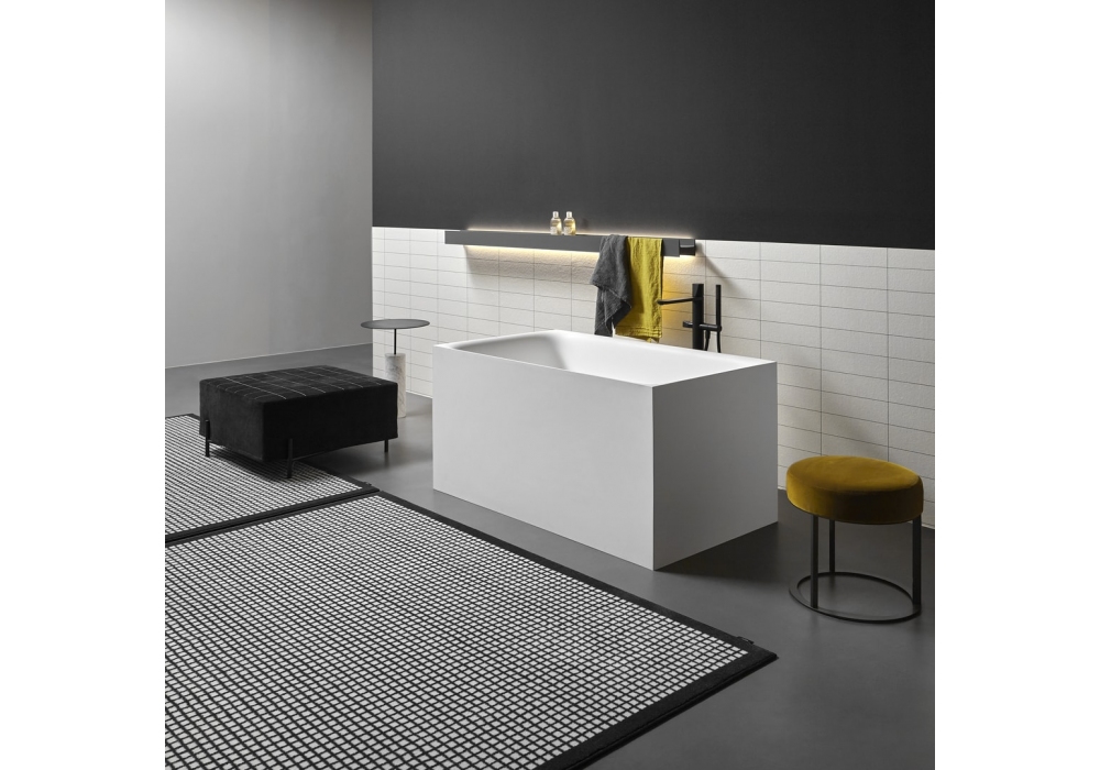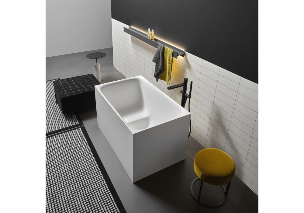 Cuba von Mario Ferrarini für Antonio Lupi entworfen, ist eine rechteckige Badewanne in Flumood, die außen in allen Farben unserer Musterkollektion lackiert werden kann, in Colormood, die innen und außen lackiert werden kann, komplett mit Abfluss mit unsichtbarem automatischen Überlauf, Siphon und flexiblem Schlauch.