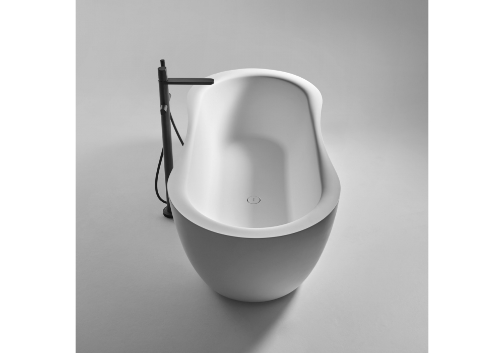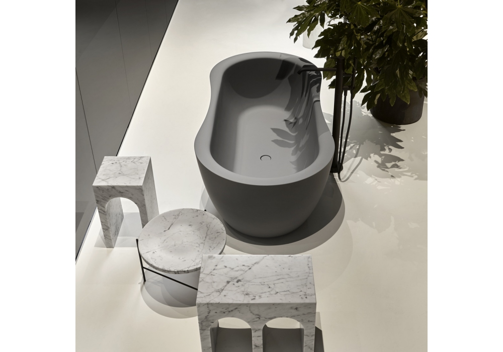 Fida von Marco Di Paolo für Antonio Lupi entworfen, ist eine ovale Badewanne in Flumood, die außen in allen Farben unserer Musterkollektion lackiert werden kann, in Colormood, die innen und außen lackiert werden kann, oder in Stein.