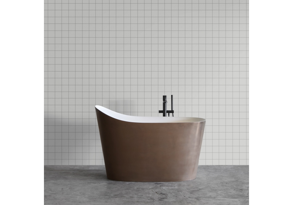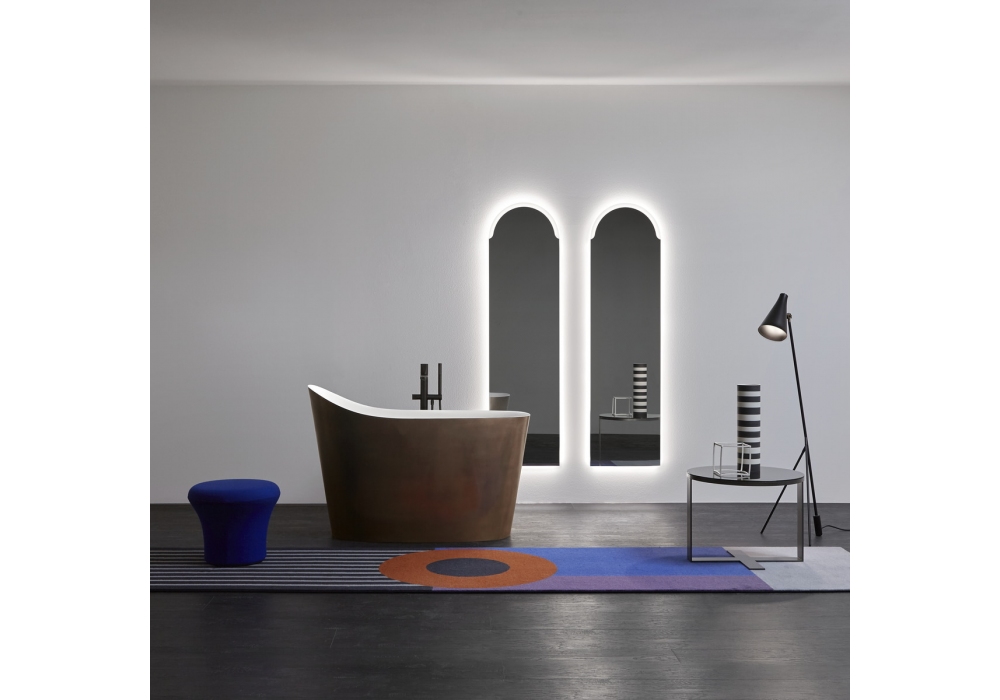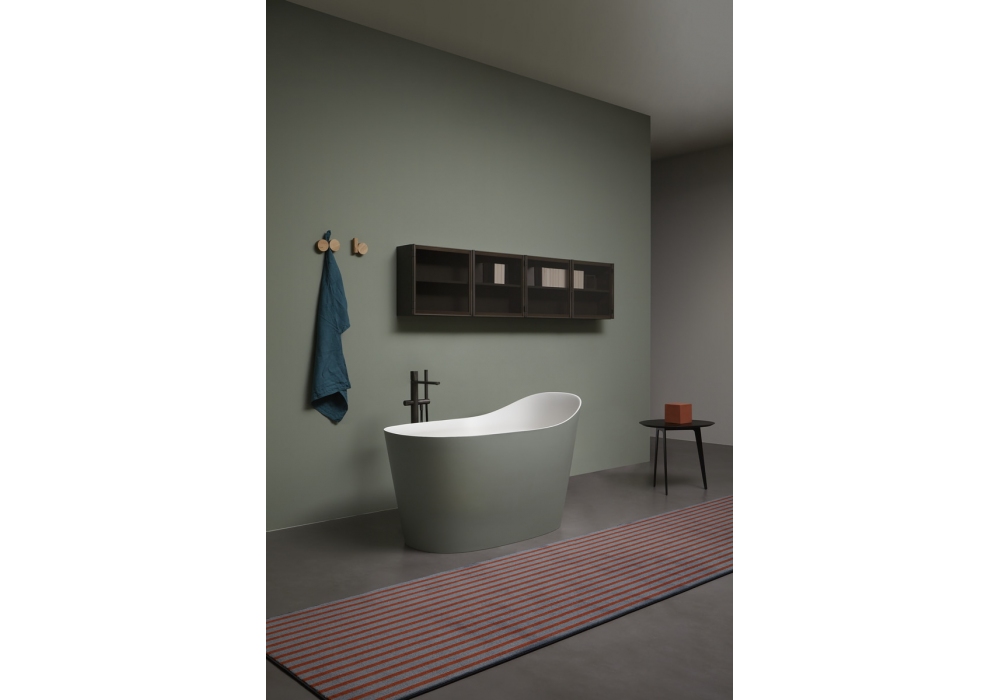 Mastello von Mario Ferrarini für Antonio Lupi entworfen, ist eine ovale Badewanne mit Flumood-Farbe, die außen in allen Farben unseres Musterbuchs lackiert werden kann, in Flüssigmetall oder in Colormood, das innen und außen lackiert werden kann, komplett mit Abfluss mit Klick-Klack-Druckablasssystem, Siphon und flexiblem Schlauch.