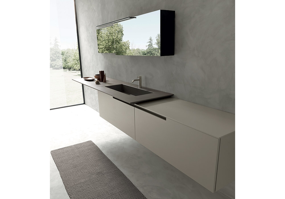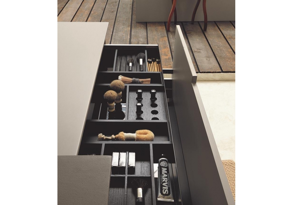 Cross, entworfen und hergestellt von Modulnova, ist ein Badezimmersystem, das aus einer Vielzahl von Materialien hergestellt wird: Steingut, Eiche, Walnuss, Eukalyptus und viele andere. Es ist mit Schubladen, Körben und Auszügen ausgestattet, die jede Aufbewahrungseinheit sehr funktional machen. Der Wandspiegel hat eine Aluminiumstruktur, die auf einziehbaren Schienen gleitet. Das Badezimmersystem Cross bietet modulare Lösungen, die für jeden Bedarf geeignet sind: Wenden Sie sich an unseren Kundendienst, um es nach Ihren Wünschen zu konfigurieren.