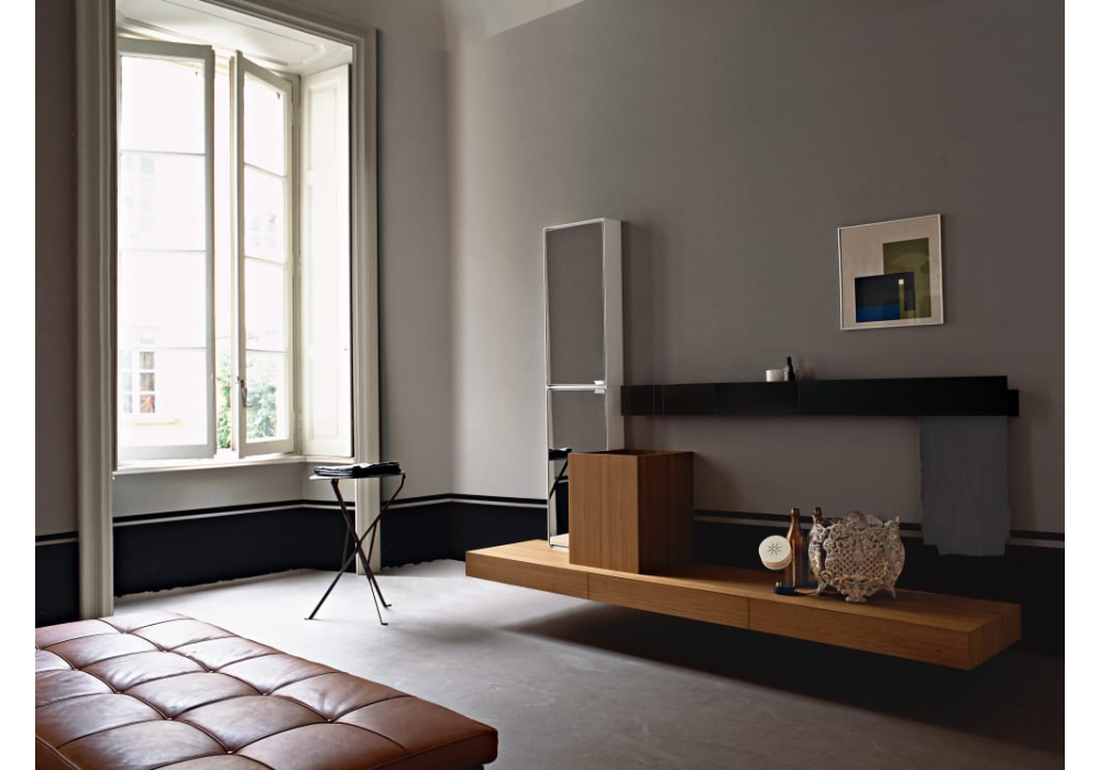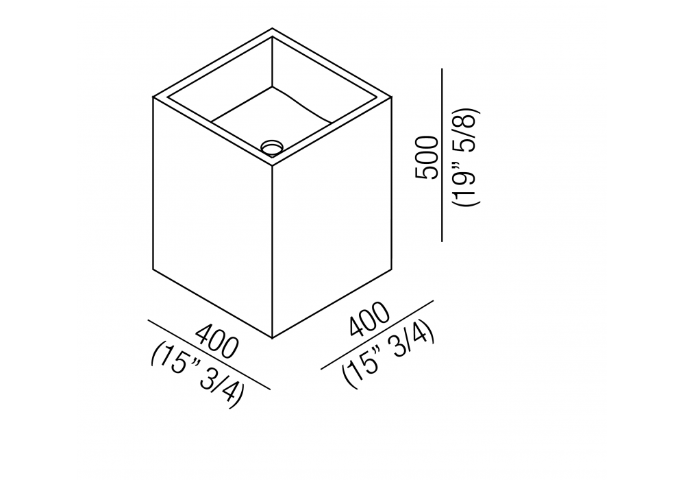 Cube von Benedini Associati für Agape entworfen, ist ein quadratisches Aufsatzwaschbecken aus wasserfestem Birkensperrholz mit natürlicher, brauner, dunkler Eichen- oder Teakholzverkleidung ohne Loch für einen Freilaufhahn. Es wird ein vormontierter Ablauf verwendet, der im Preis inbegriffen ist.