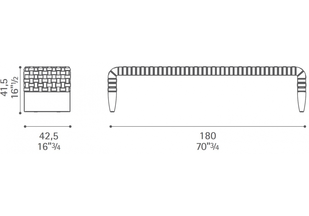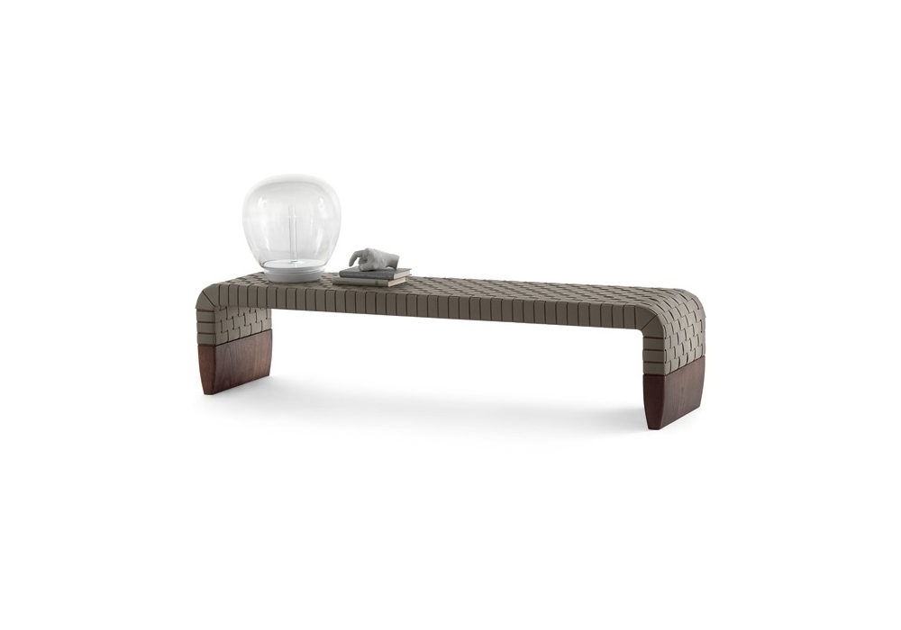 Poltrona Frau legt einen der interessantesten und unkonventionellsten Entwürfe aus dem umfassenden Oeuvre von Guglielmo Ulrich neu auf: die Bank Brera. Die Einfachheit des Designs harmoniert voll und ganz mit den extravaganten Lederverflechtungen, die die Sitzfläche überziehen. Breite Gurte aus 2 mm dickem Cuoio Saddle® Extra-Leder, die durch von Hand gearbeitete Gravuren über die gesamte Länge veredelt wurden, erzeugen ein geometrisches und gleichzeitig plastisches Motiv. Die lineare und raffinierte Gesamtwirkung ist überaus modern. Die Struktur und die beiden leichten, nach oben hin verjüngten Stützen bestehen aus Massivesche mit Mokka- oder Wengé-Finish. Die Polsterung ist aus Polyurethanschaum.