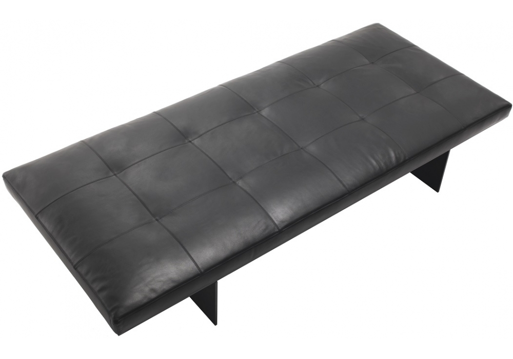 Track designed by David Lopez Quincoces for Living Divani is a bench with supporting steel frame and base in aluminum with black epoxy powder coating. Seat cushion with differentiated density polyurethane foam, mounted on chassis sprung with coated rubber elastic straps. Covering in 100% polyether thermally bonded onto a polyamide velveteen backing. Quilted fabric or leather upholstery, the fabric version only is fully removable by Velcro fastening after unscrewing the chassis from the supporting frame. Seat depth 55-80cm.