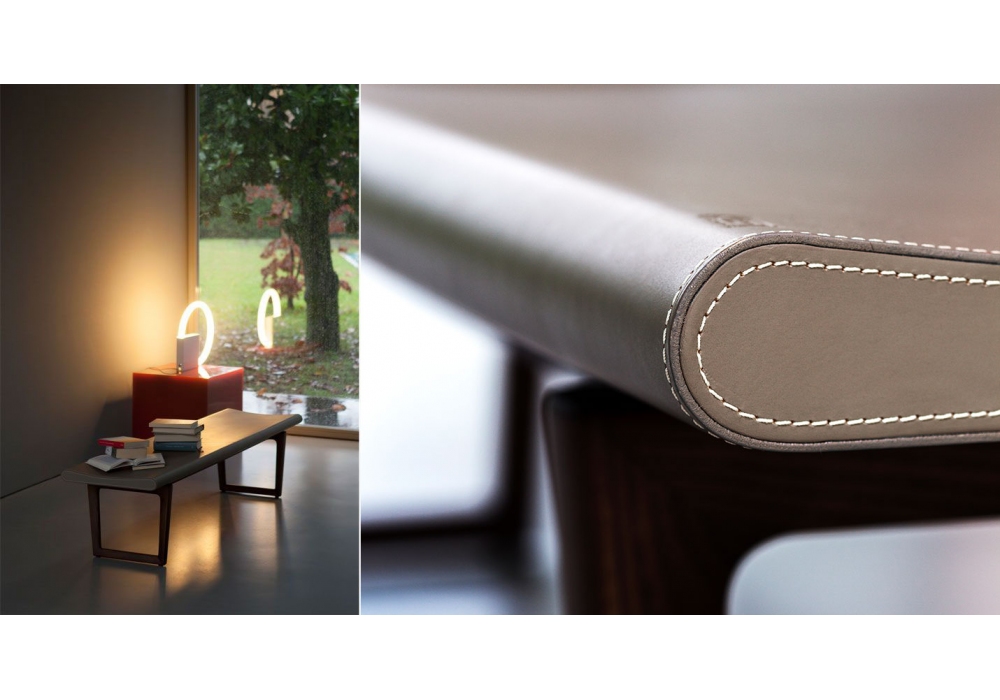 Fidelio entworfen von Roberto Lazzeroni für Poltrona Frau ist eine Bank mit Struktur aus massivem Eschenholz und Sitzpolster aus Kernleder. Stitching in Ton-in-Ton oder kontrastier.