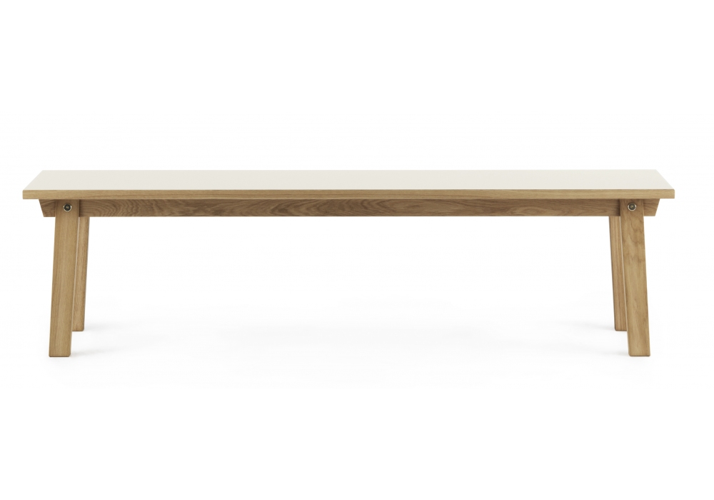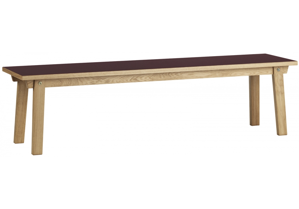 Slice, von Hans Hornemann für Normann Copenhagen entworfen, ist eine komplett aus Eichenholz gefertigte Bank mit Linoleumplatte. Linoleum als Naturprodukt hat antibakterielle und selbstheilende Eigenschaften, mit einer samtigen, weichen und angenehm anzufassenden Oberfläche und dank der Widerstandsfähigkeit der Materialien perfekt für den häufigen Gebrauch. Slice ist in verschiedenen Ausführungen erhältlich.