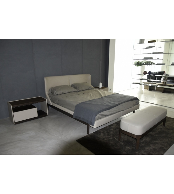 Fulham von Rodolfo Dordoni für Molteni&C entworfen, ist eine Bank mit Struktur aus gebeiztem Massivholz und Bezug aus Stoff oder Leder.