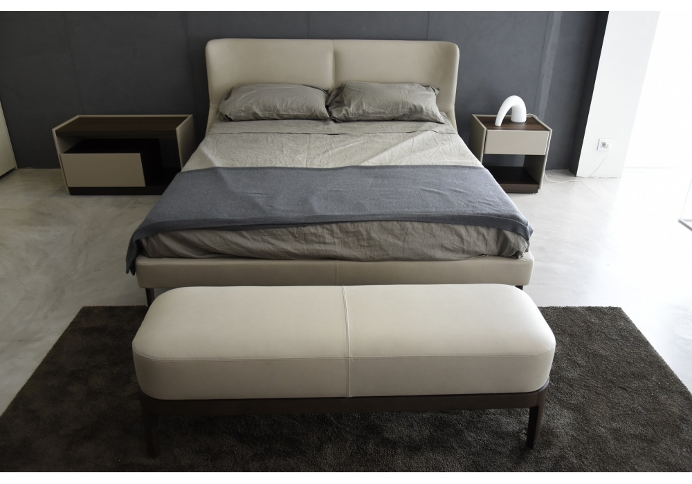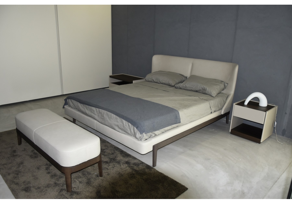 Fulham von Rodolfo Dordoni für Molteni&C entworfen, ist eine Bank mit Struktur aus gebeiztem Massivholz und Bezug aus Stoff oder Leder.