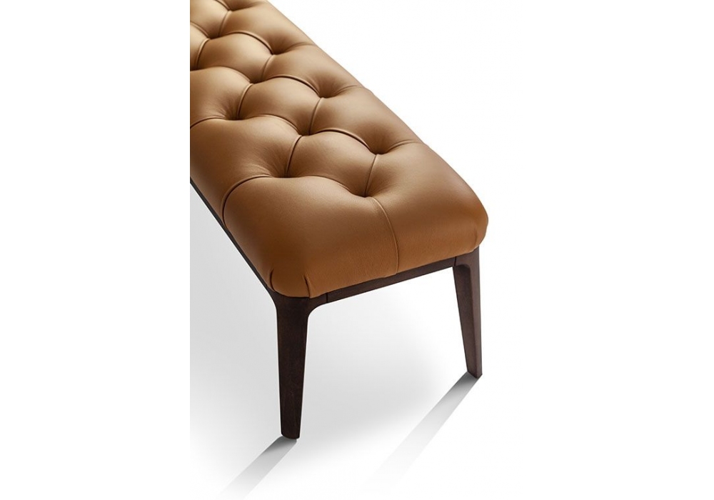 Glenn von Roberto Lazzeroni für Poltrona Frau entworfen, ist eine Bank mit Struktur aus Birkensperrholz und Polsterung aus Polyurethanschaum. Der Sitz verfügt über ein handgemachtes Capitonné-Design. Beine aus Eschenholz. Bezug aus Pelle Frau Leder.