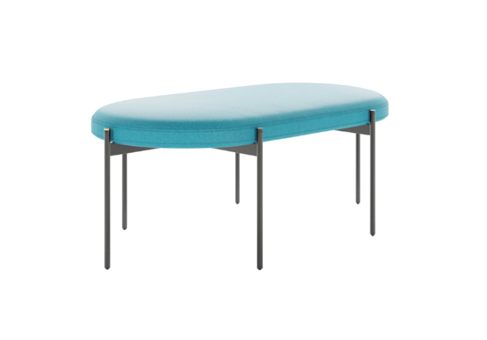 Caillou von Liu Jo Living Collection entworfene ist eine Bank. Das Gestell ist aus Sperrholz gefertigt. Der Fuß ist aus Metall und in vier Farben erhältlich. Der Bezug ist in Stoff oder Leder erhältlich.
