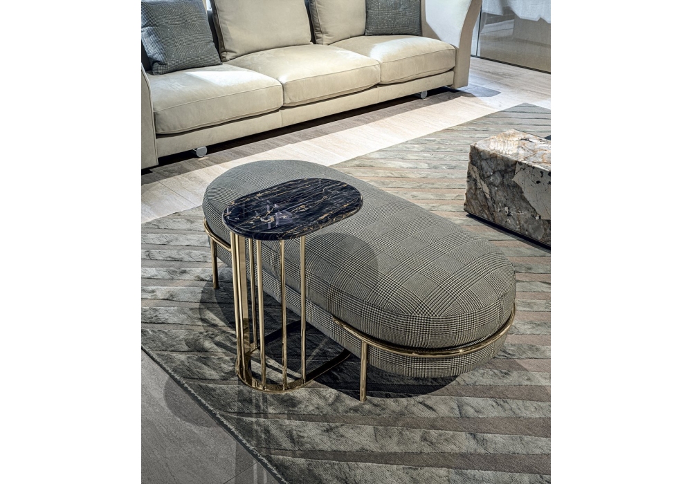 Lloyd von Giuseppe Iasparra für Longhi entworfen, ist eine Bank mit Holzstruktur, die mit hochdichtem Polyurethanschaum bedeckt ist, mit Sitzfläche aus mitteldichtem Polyurethanschaum, der mit Polyesterfaser in Verbindung mit TNT bedeckt ist. Nicht fusselnder Stoff oder Pewlle-Polsterung. Verfügbar in verschiedenen Abmessungen.
