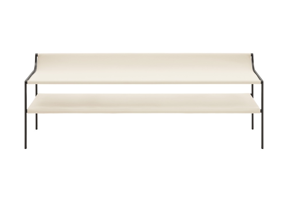Quiet Lines von Gabriel Tan für B&B Italia entworfen, ist eine Bank mit einer Struktur aus lackiertem Stahl und Ledereinsätzen. Verfügbar in mehreren Ausführungen.
