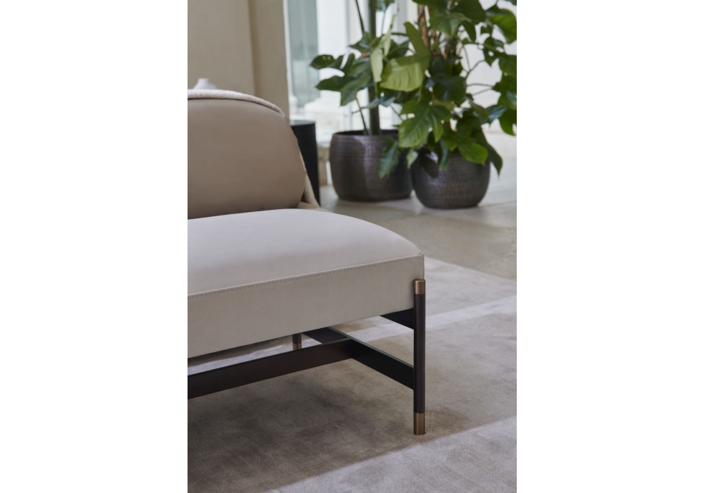 Iron von Joe Garzone für Conte Casa entworfen, ist eine Bank mit Stoff- oder Lederbezug und einer bronzefarben lackierten Metallstruktur mit Details aus brüniertem Messing.