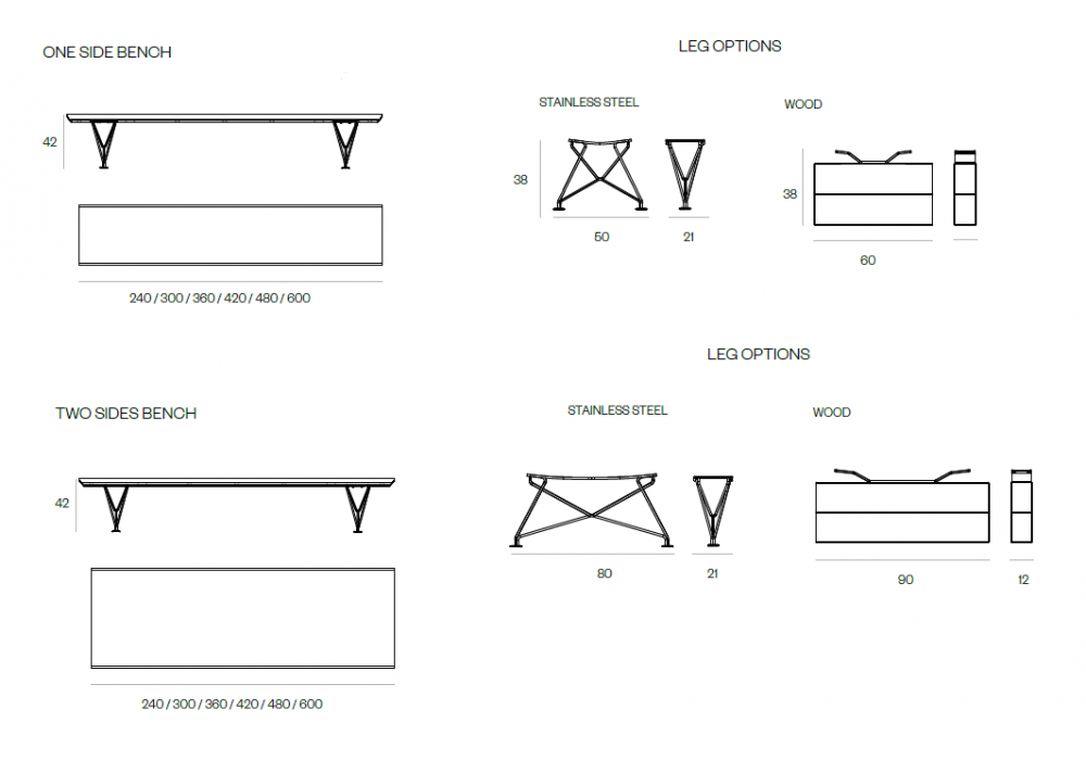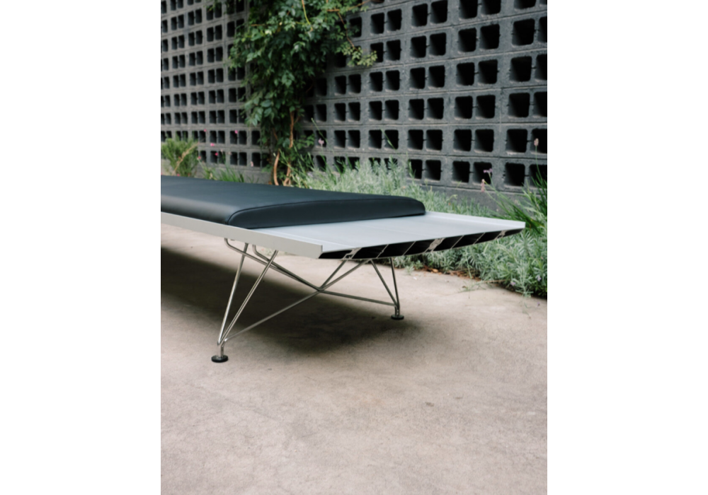 Wing Design von Konstantin Grcic für BD Barcelona ist eine Bank mit Beinen aus elektropoliertem Edelstahl oder aus Holz mit lackierter Stahlstütze für den Innenbereich. Die Sitzflächen können mit Leder (für den Innenbereich erhältlich in allen BD-Stoffen und -Ledern) oder mit Gummifliesen (für den Innen- und Außenbereich) bezogen werden. Auf Anfrage ist ein Tablett aus Eschenholz oder gemasertem oder schwarzem Marquina-Marmor als Zubehör erhältlich.