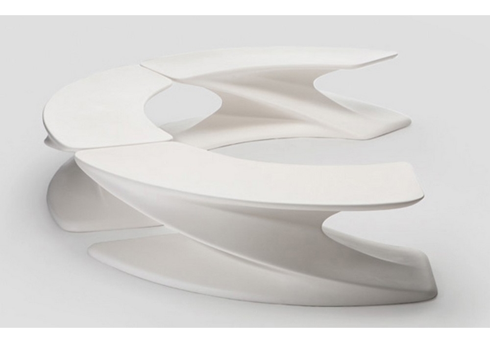 Drift-In Drift-Out, entworfen von Amanda Levete für Established & Sons, ist eine Bank, die mit ausgeklügelter Engineering-Software hergestellt wurde, um die architektonische Form zu formen. Es ist in verschiedenen Ausführungen erhältlich.