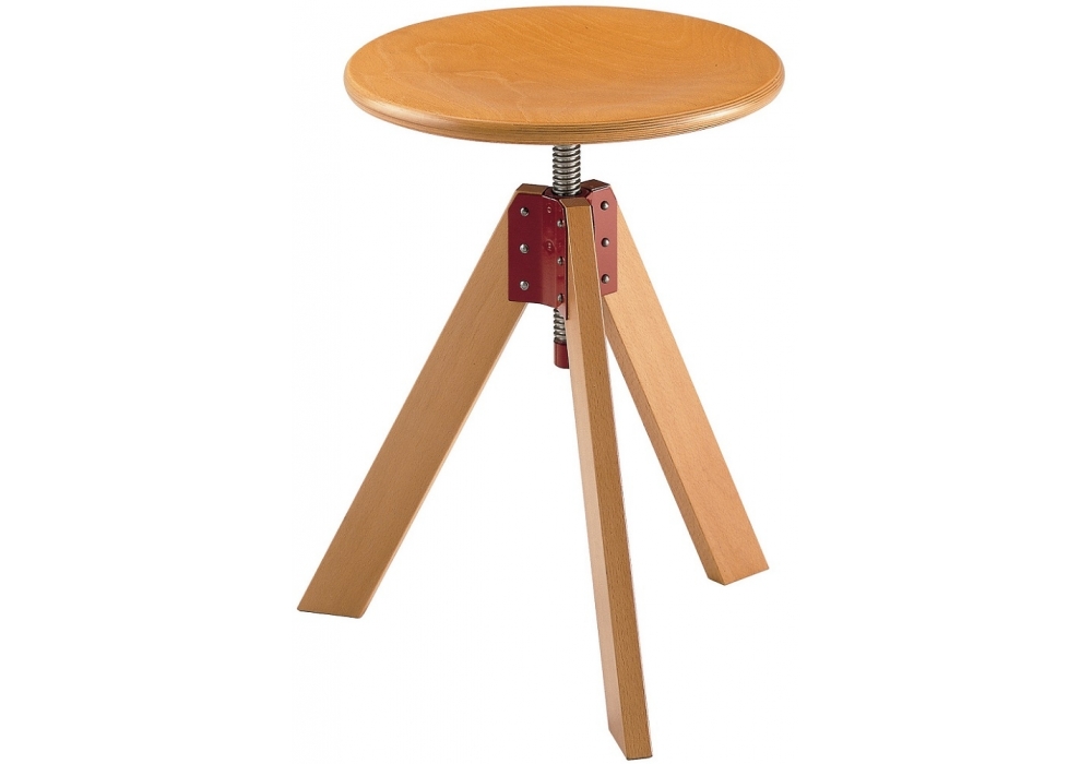 250 Giotto von De Pas, D’Urbino, Lomazzi für Zanotta entworfen, ist eine Hocker mit Struktur aus Buche, naturfarben, mit rotem Kreuz. Drehbarer Sitz, höhenverstellbar.