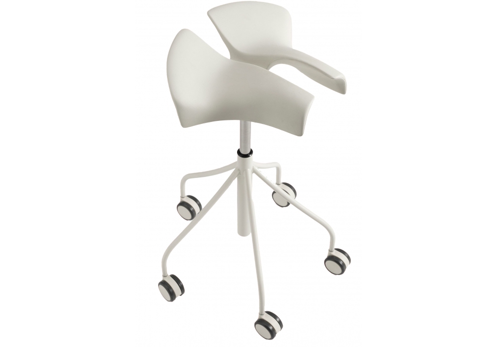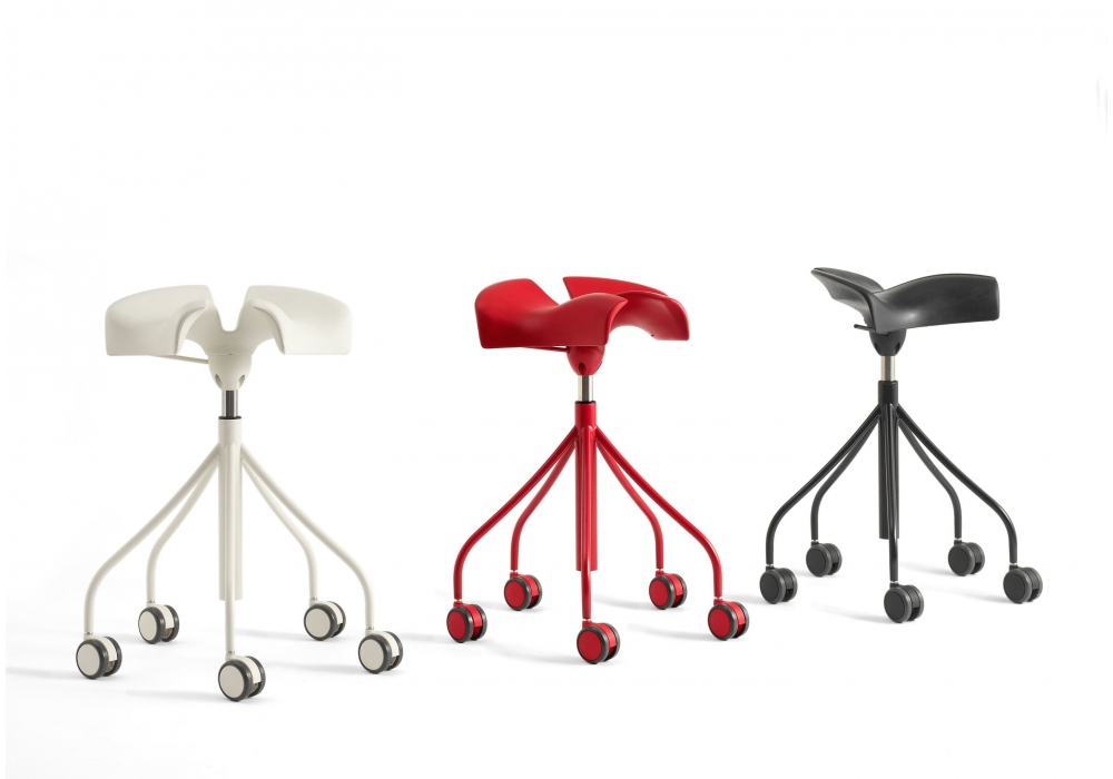 Binaria, von Jordi Badia und Otto Canalda für BD Barcelona entworfen, ist ein Hocker mit Struktur und Hebel aus Polyester-pulverbeschichtetem Stahl und Satin-Finish. Der Sitz ist aus eingespritztem Polyurethan mit Gaskolben zur Höhenverstellung. Erhältlich in verschiedenen Ausführungen.